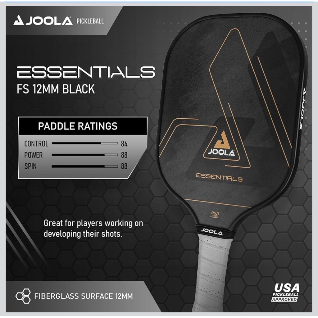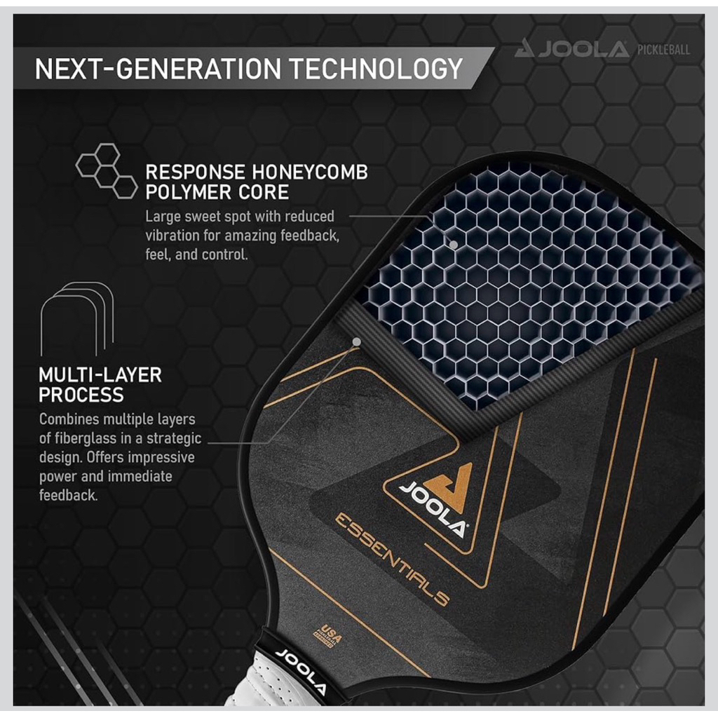 JOOLA Essentials Pickleball Paddle – Reinforced Fiberglass Surface, Honeycomb Polypropylene Core