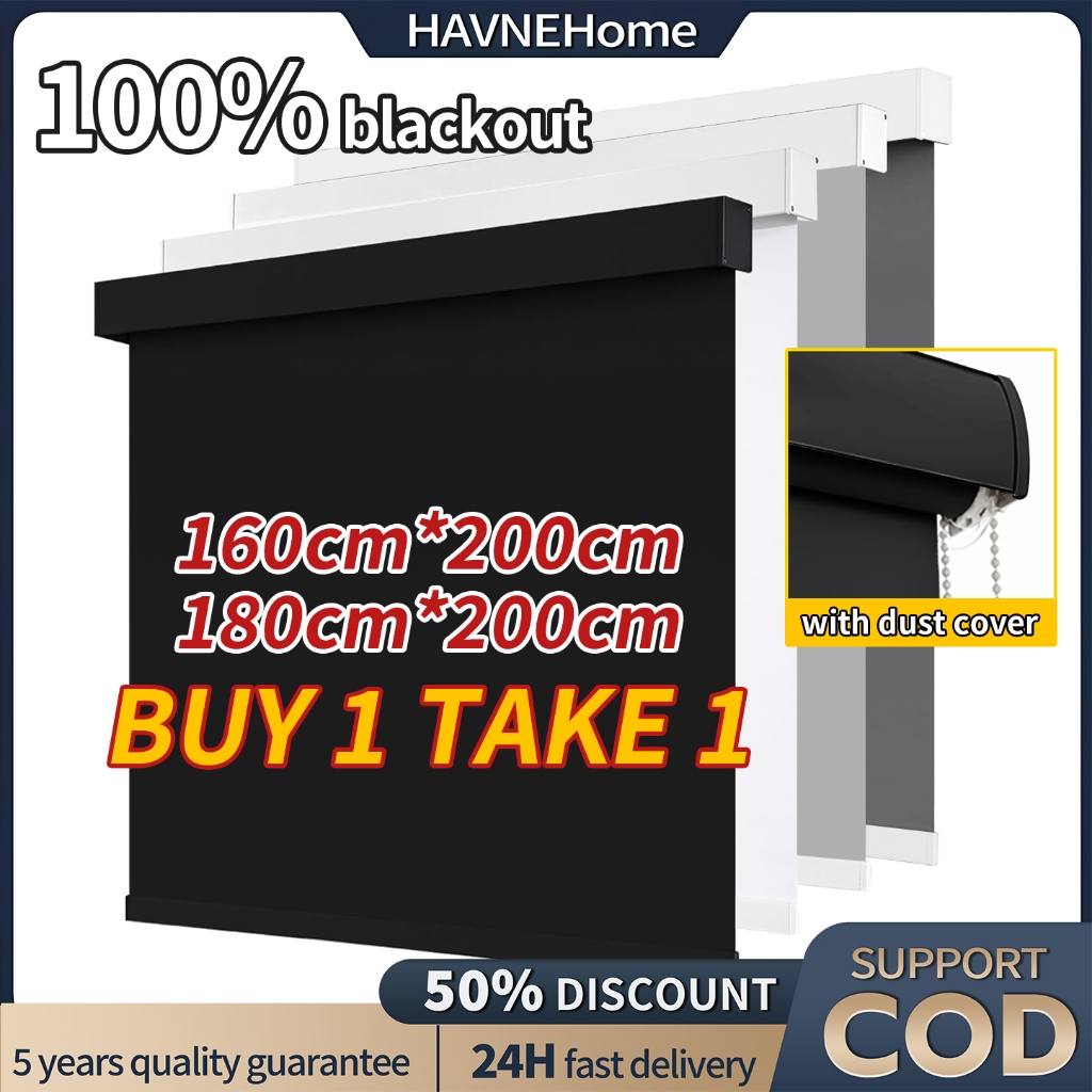BUY 1 TAKE 1 100% Blackout Curtain Blinds For Window Duo Roller Blinds for Bedroom 160/180*200cm
