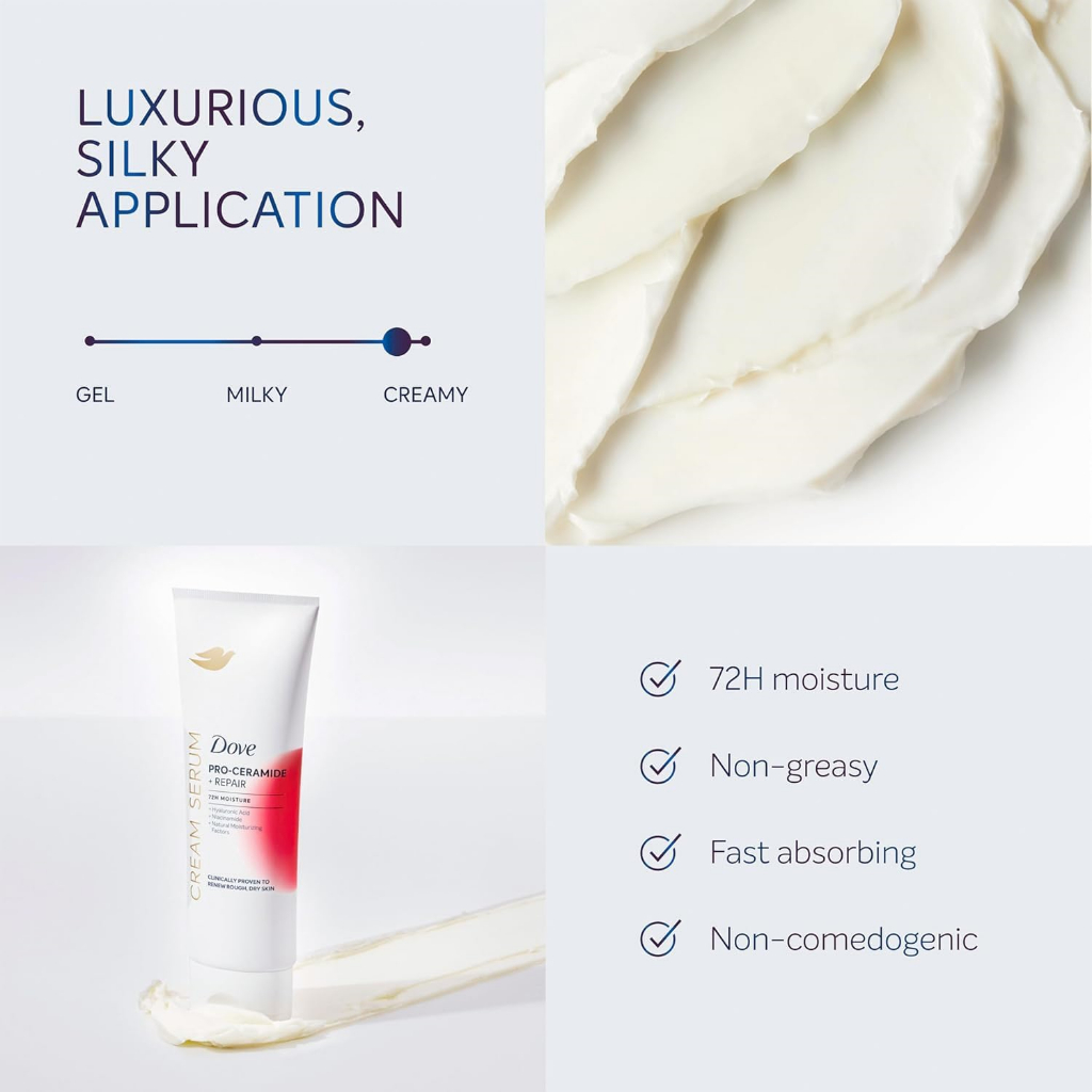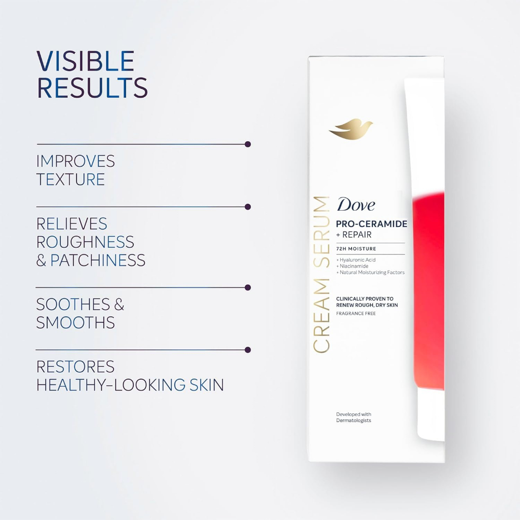 Dove Pro Ceramide + Repair Cream Serum 72H Moisture - Renews Rough Dry Skin 240ml (8 oz)