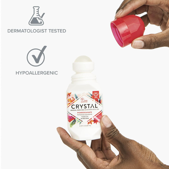 Crystal Mineral Enriched Deodorant Roll On - No Aluminum, Pomegranate 66ml