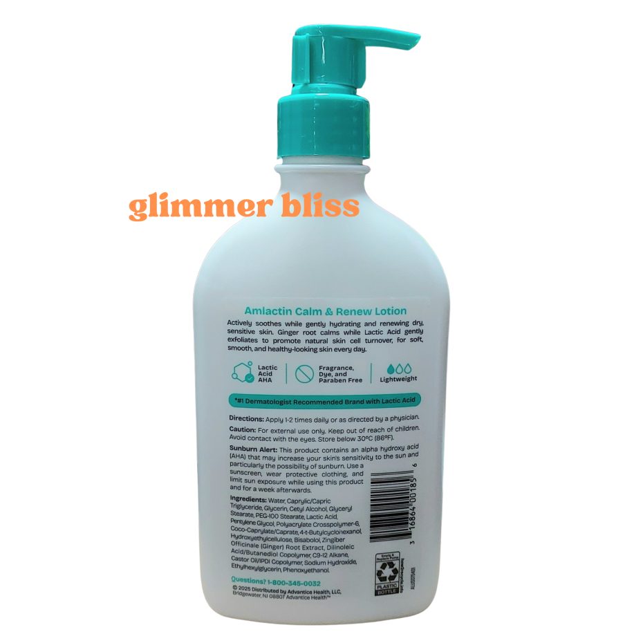 AmLactin Calm & Renew Lotion for Sensitive Dry Skin, Calms Irritation & Exfoliates 400ml (14.1 oz)