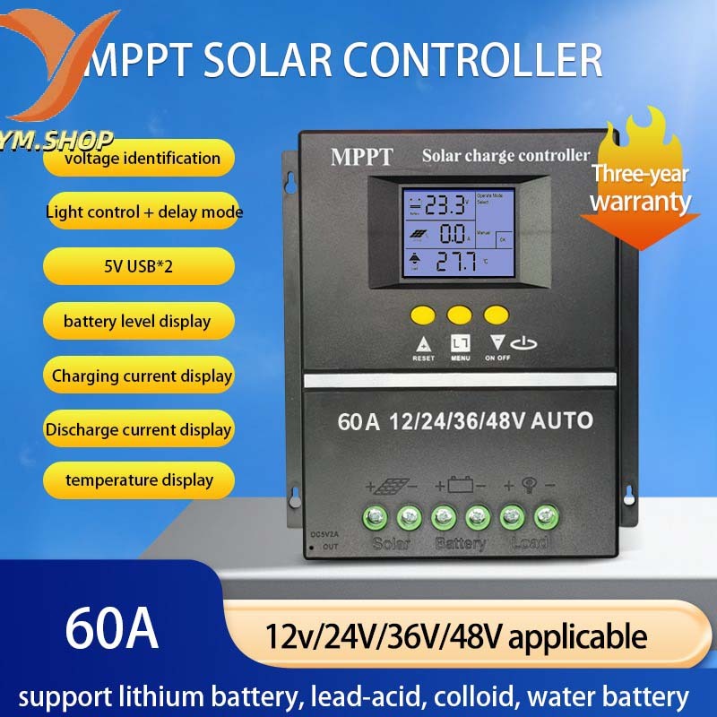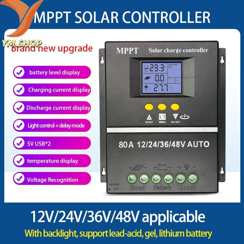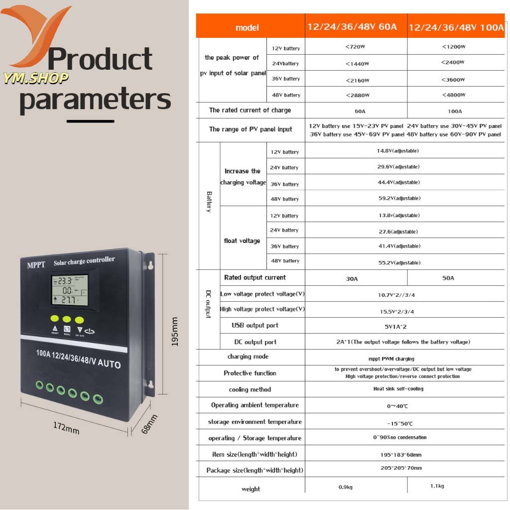 MPPT Solar Controller 30A-100A - 12V/24V/36V/48V Auto Battery Charger with LCD Display Screen