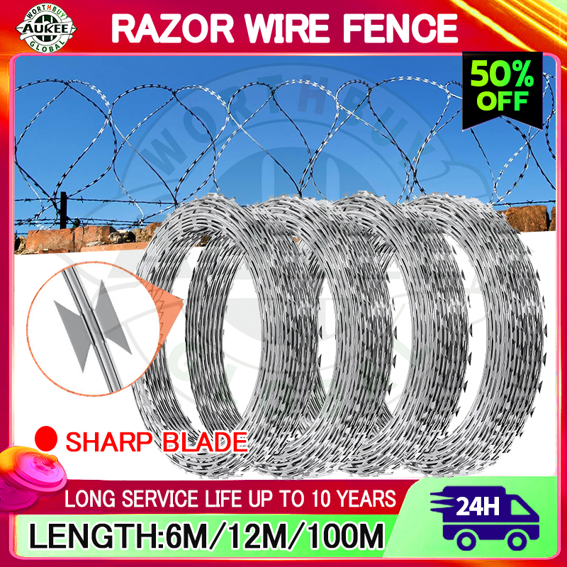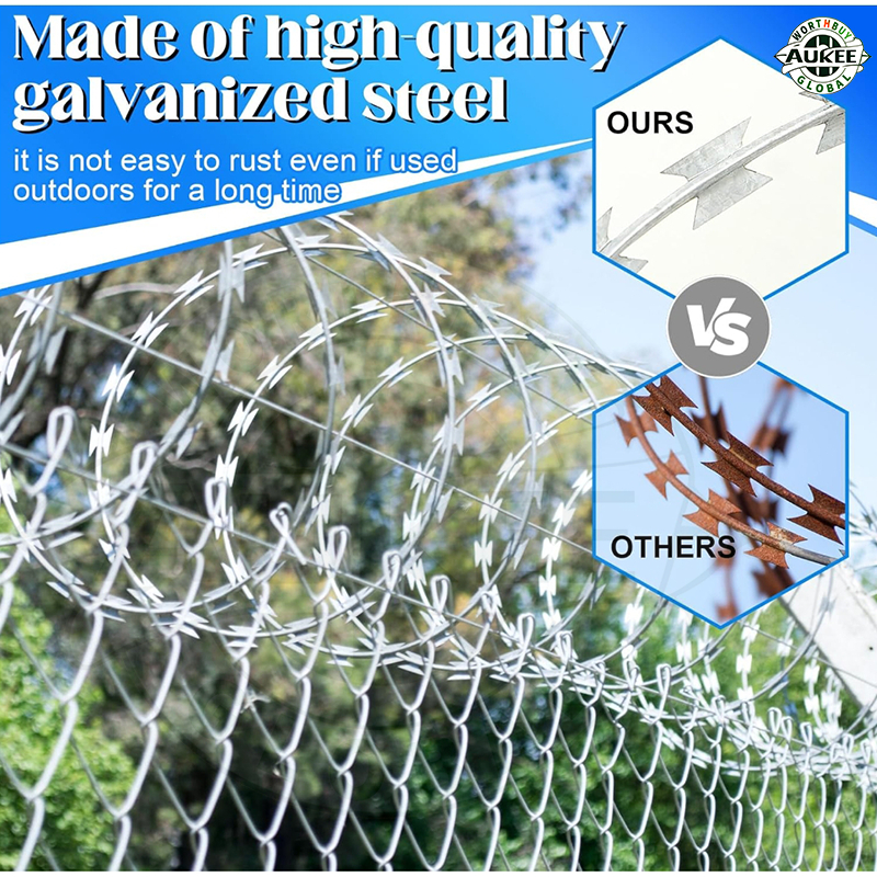 Galvanized Razor Wire for fence 100M Anti-theft Steel Sharp Razor Fence Garden Combat Blade Wire