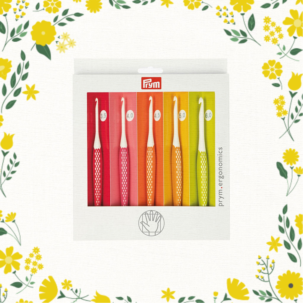 【From Japan】Prym Ergonomic Crochet Hook Set (3.5/4.0/4.5/5.0/6.0mm) Set of 5/1 of each PRM218440 Colorful PRYM_218440-1