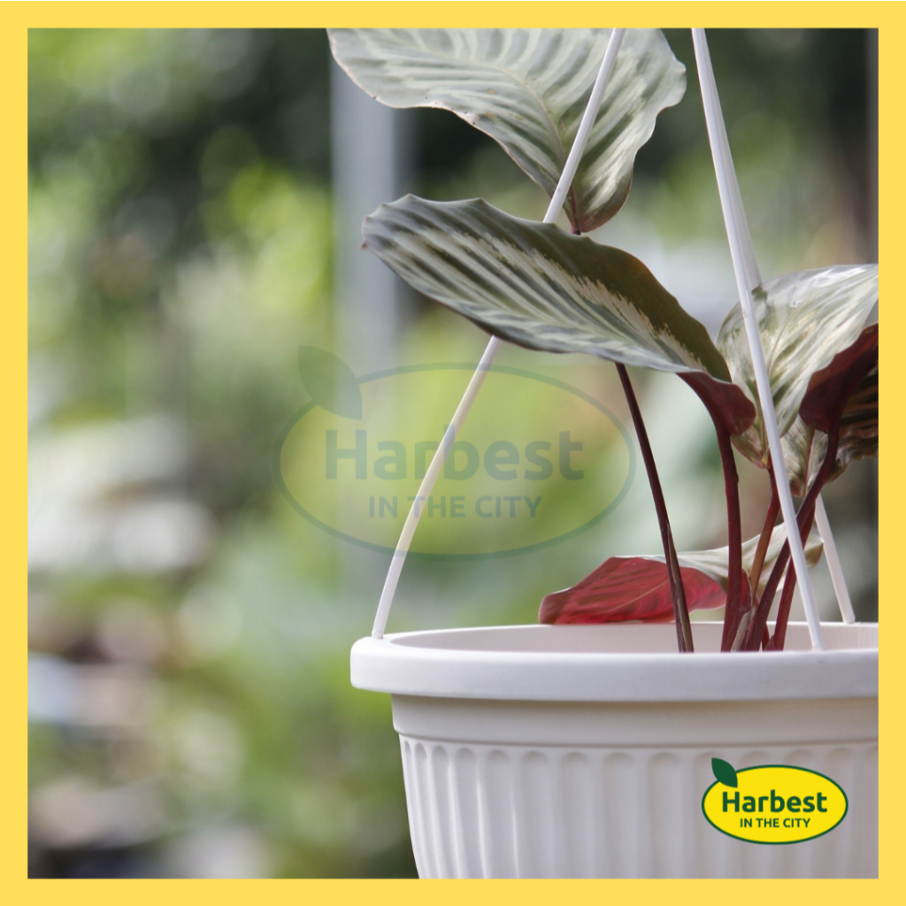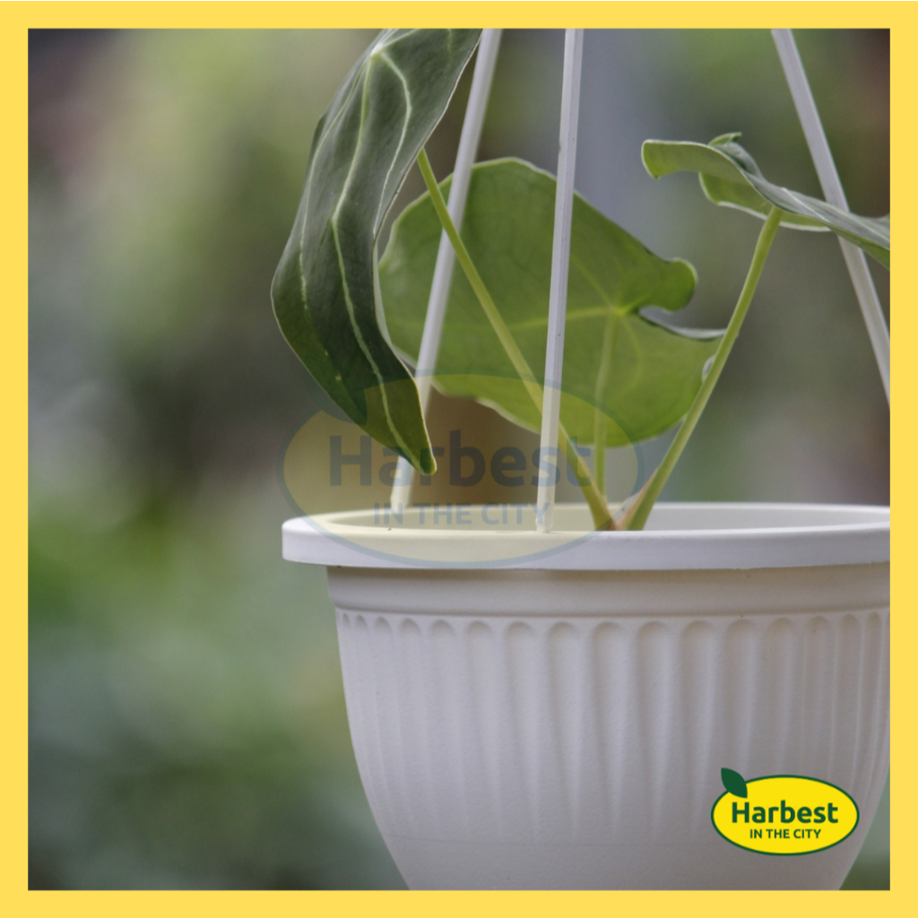 Planting Container - Pumpkin Style Hanging Pot Color White & Brick - Harbest In The City