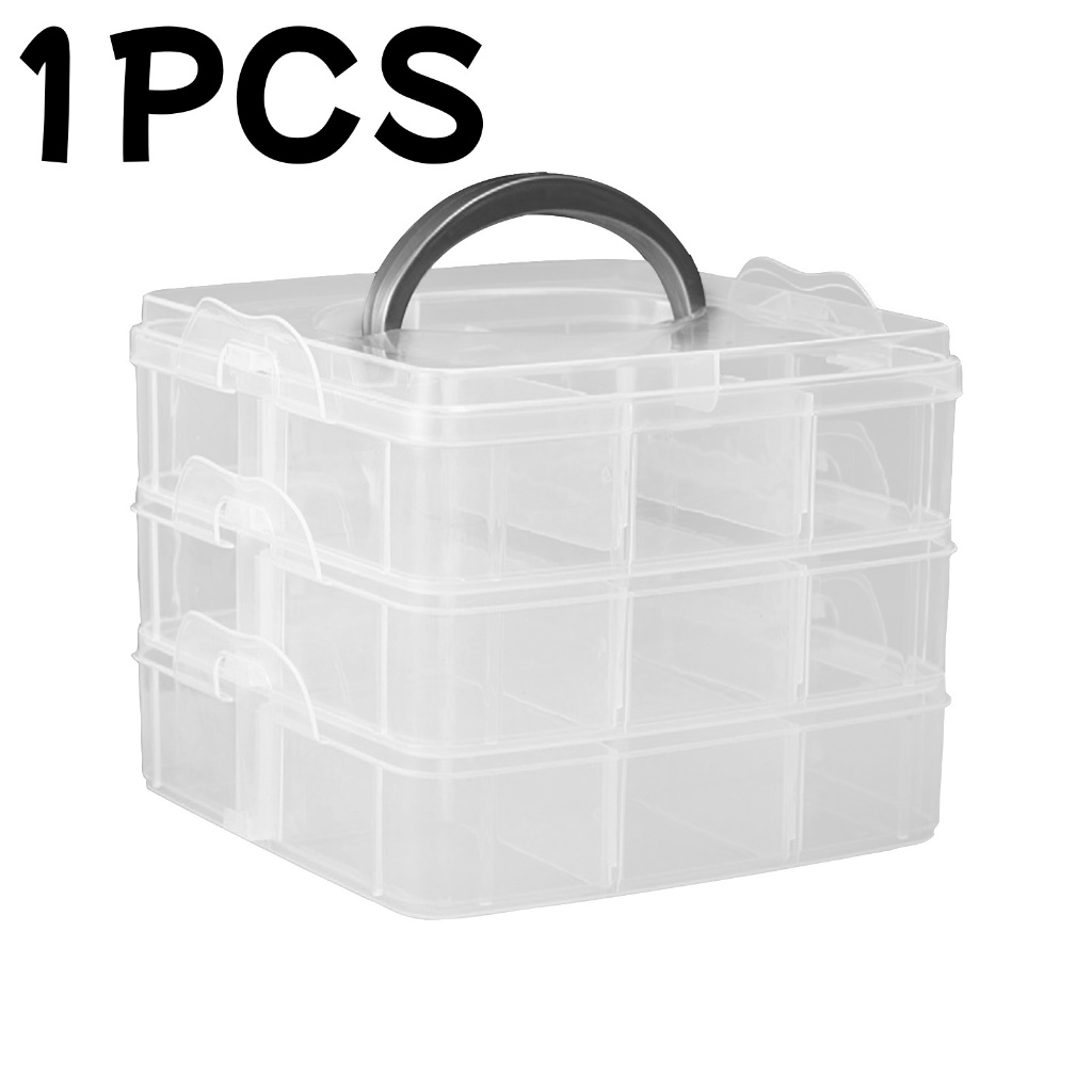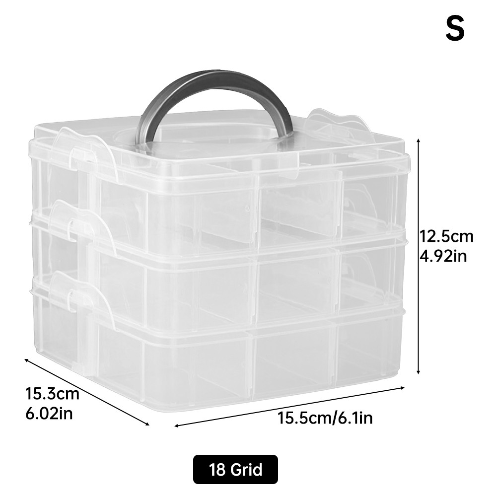 3-Layer 18/30 Larger Capacity Storage Box Adjustable Dividers Cosmetic Storage Case Removable Toy Storage Slots Crafts Portable Jewellery Storage Box Transparent Storage Bin