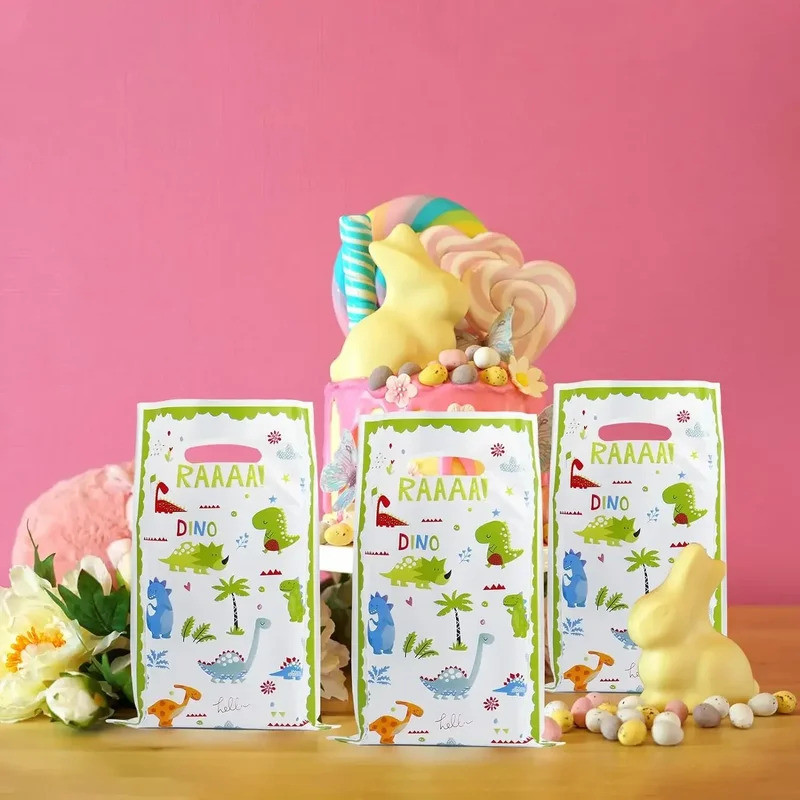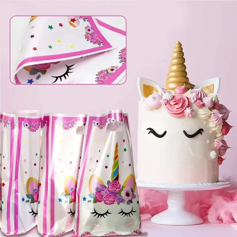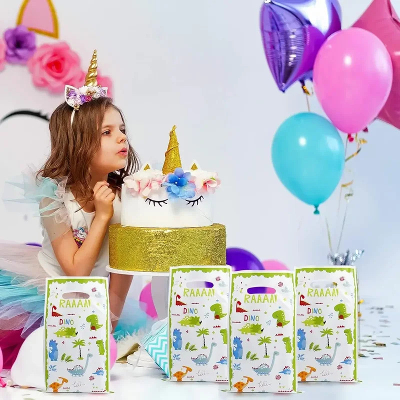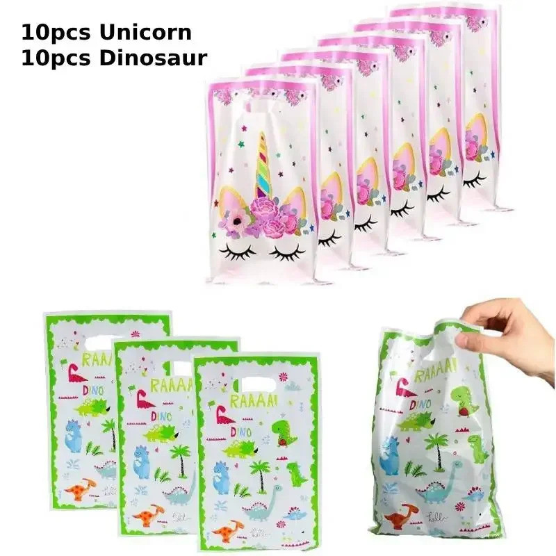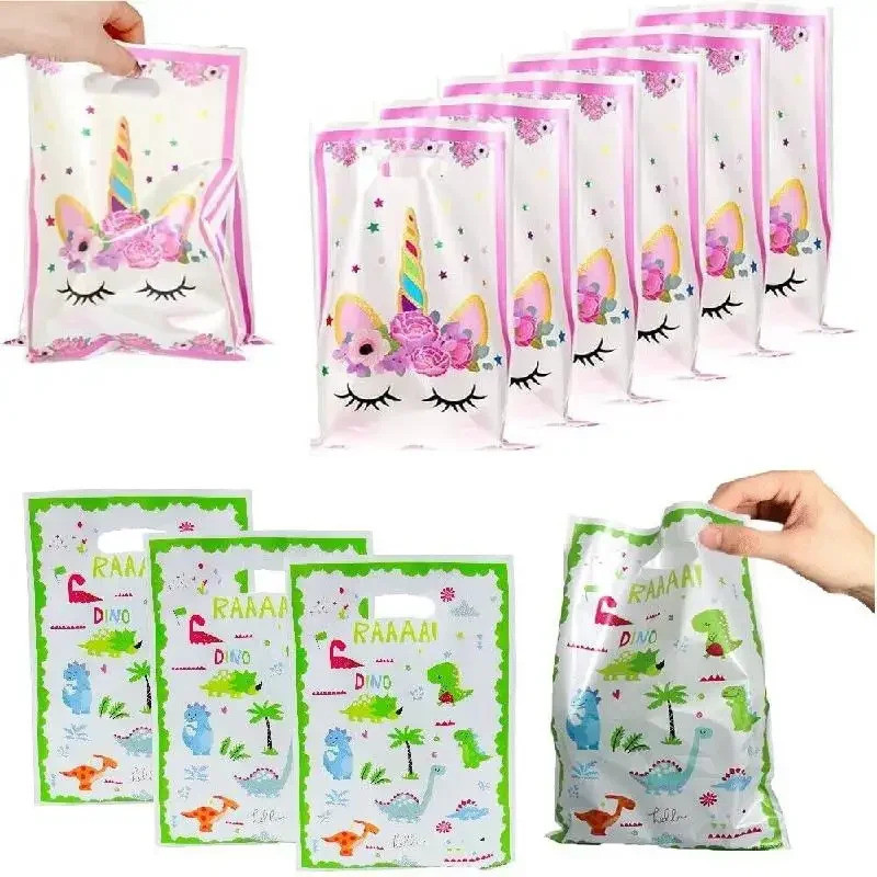 30pcs Unicorn Birthday Gift Bags Dinosaur Party Decorations Plastic Goodie Bags Treat Bag for Kids Girls Party Baby Shower Candy