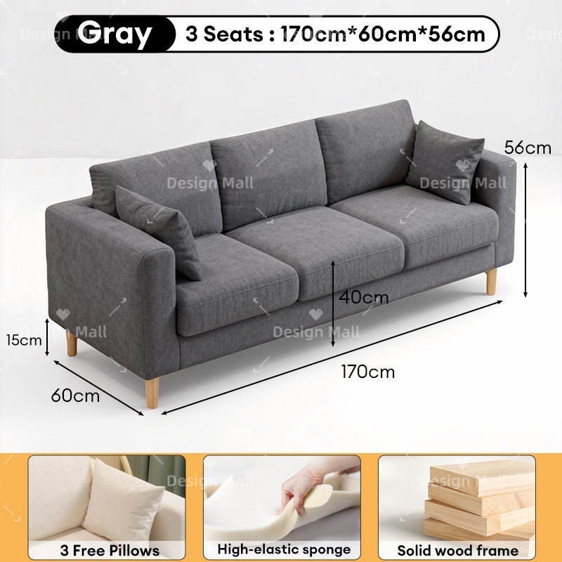 Fabric Sofa 3-Seater Simple and modern fabric sofa Nordic Style Solid Wood Sofa Bed Chair Furniture