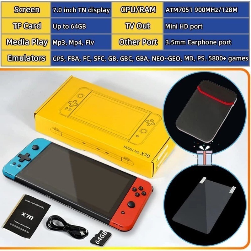 PSP X7 Gameboy Retro Video Game Console 8GB Bawaan 20.000+ Game 4.3Inch Handheld Game Console PSP X7 Handheld Game Console