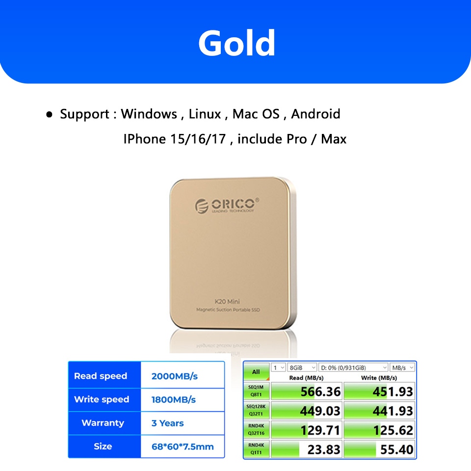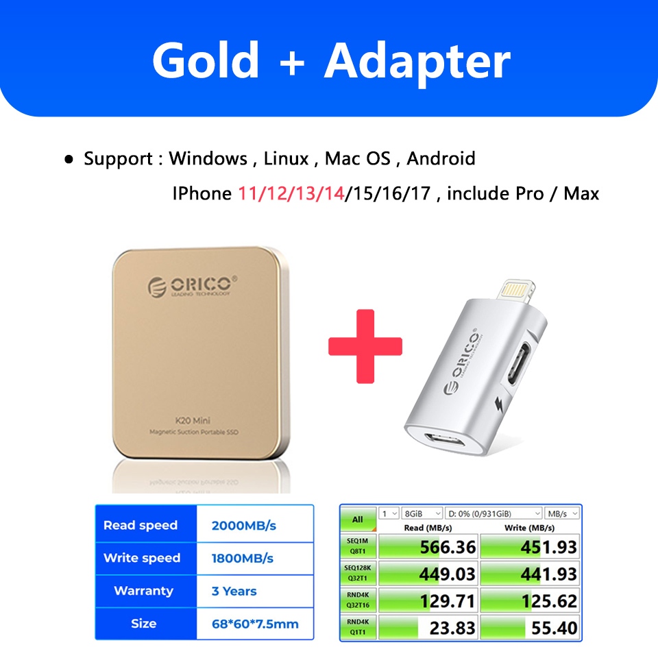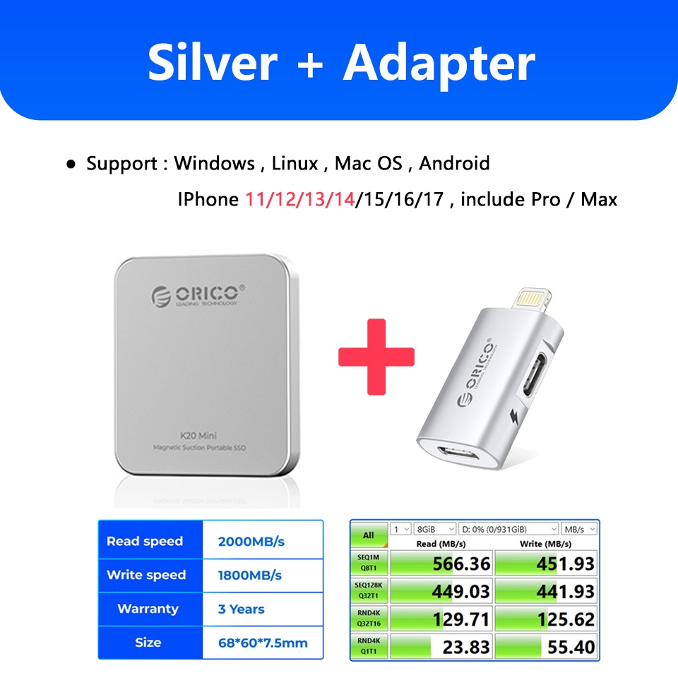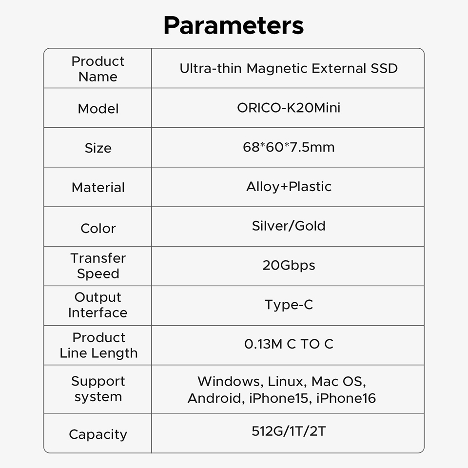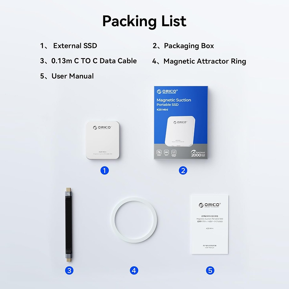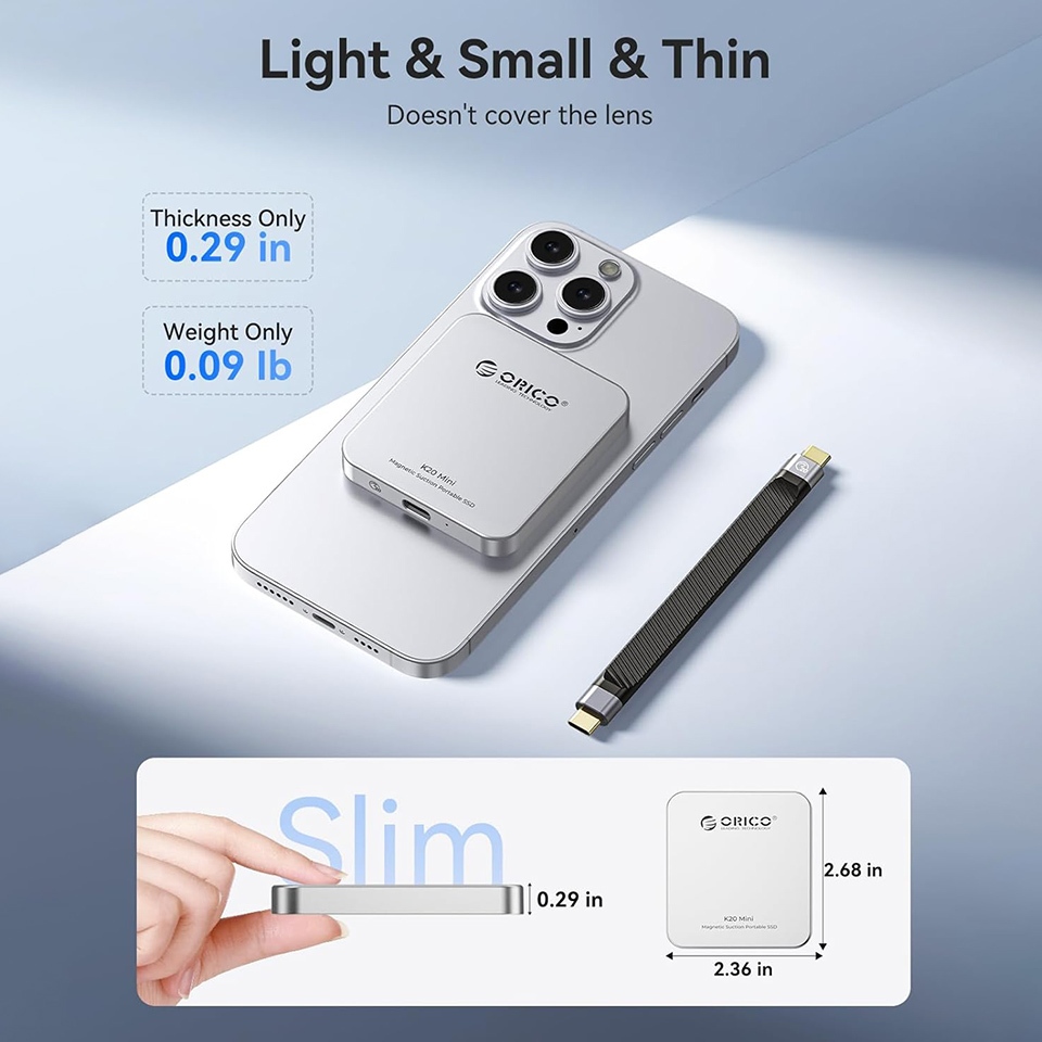 100% Original ORICO Portable Magnetic External SSD 512GB 1TB Back Clip Mini Solid State Drive for iPhone 15 16 or Pro Max Android Phone K20mini