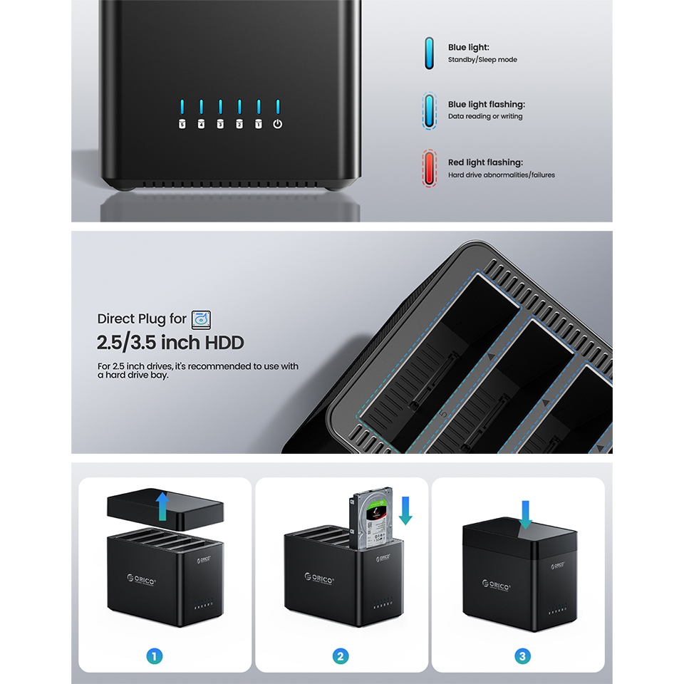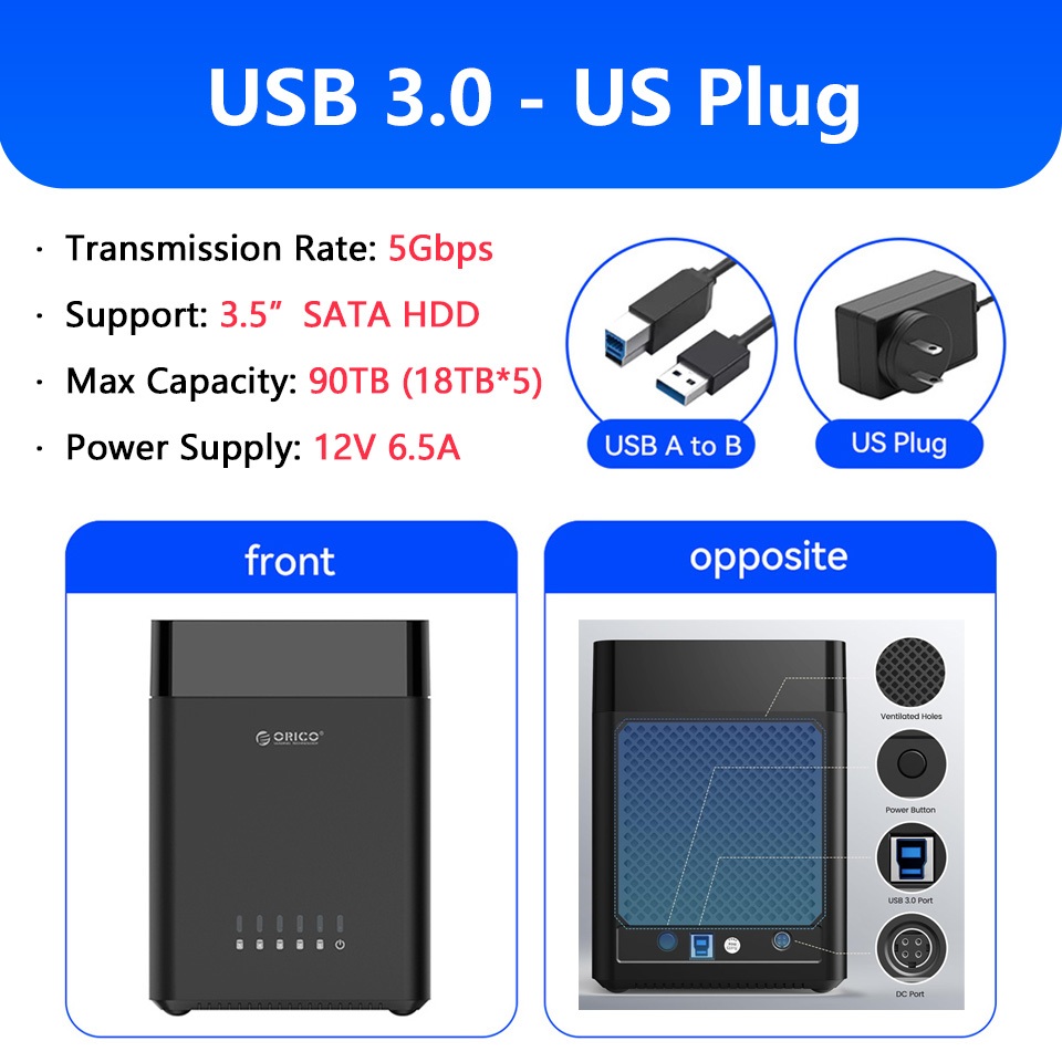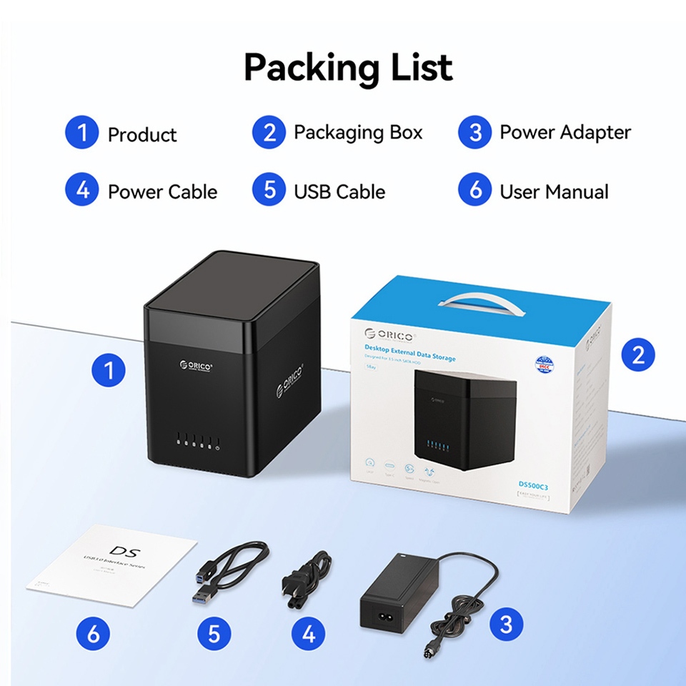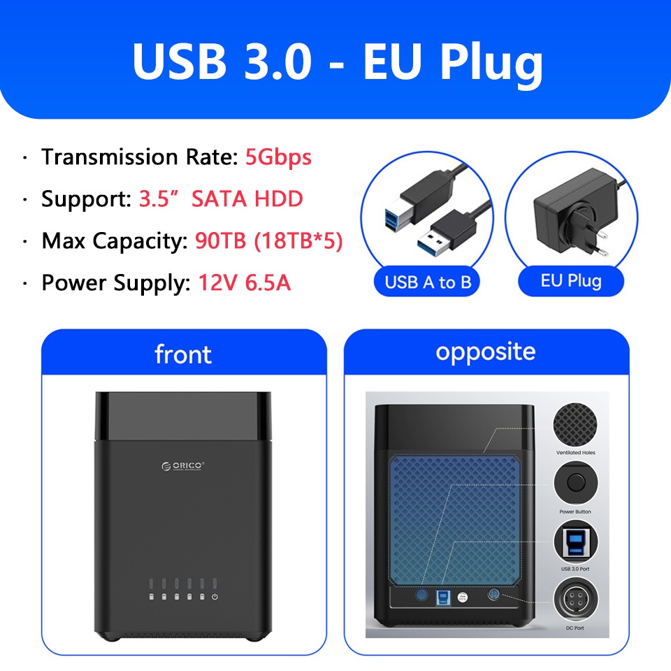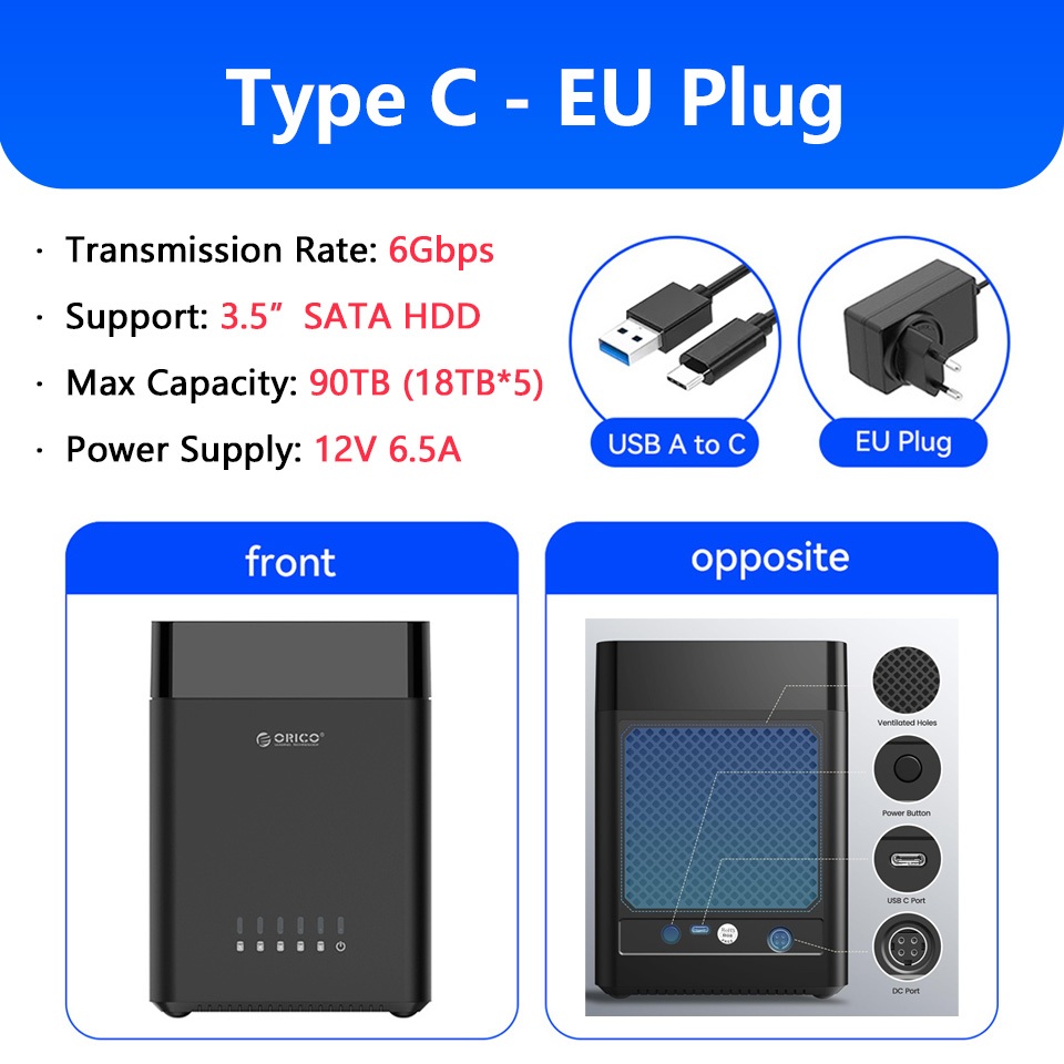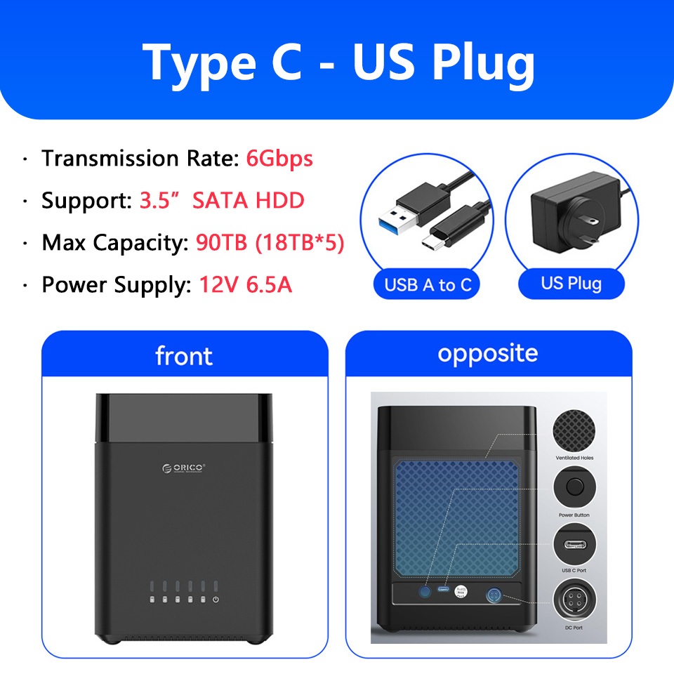 100% Original ORICO 5 Bay 3.5 inch SATA HDD Docking Station House USB A Type C Hard Drive Enclosure Storage Box External Case 5Bay DS500
