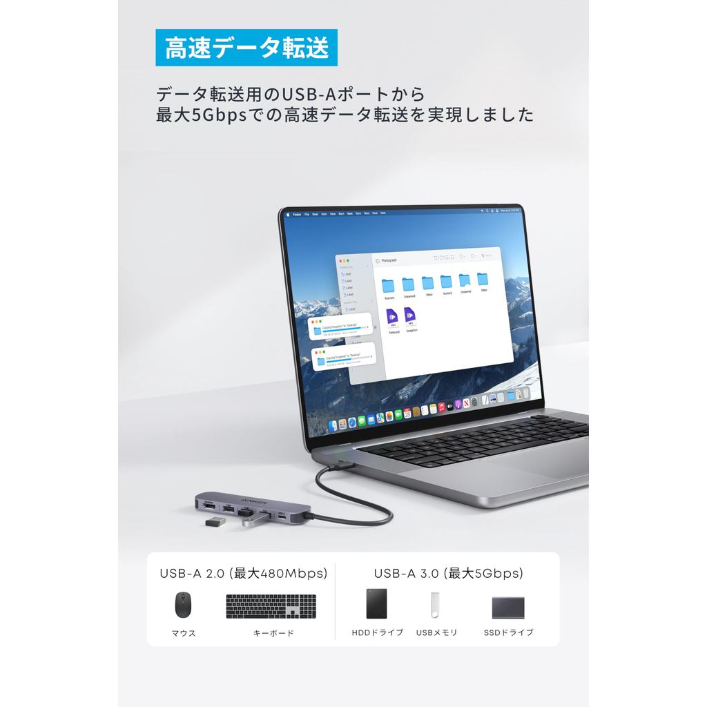 Anker USB-C Hub (5-in-1, 4K, HDMI) Gray 100W USB PD Compatible 4K HDMI Port with 5Gbps High-Speed Data Transfer, featuring USB-C/USB-A Ports.