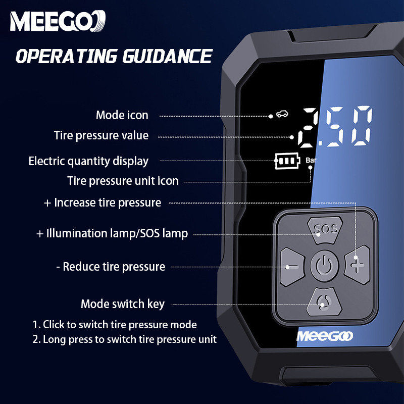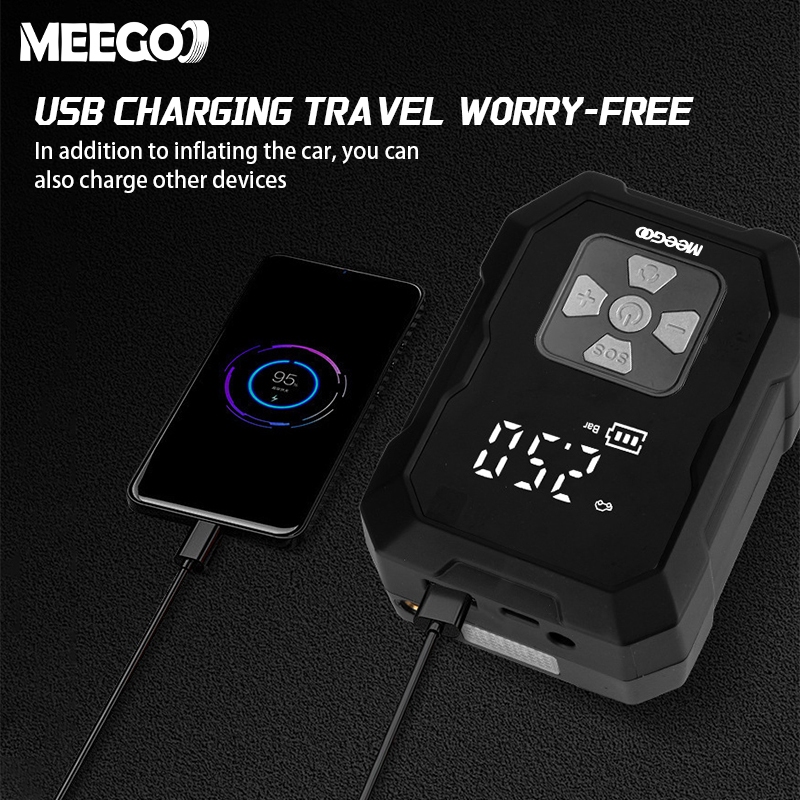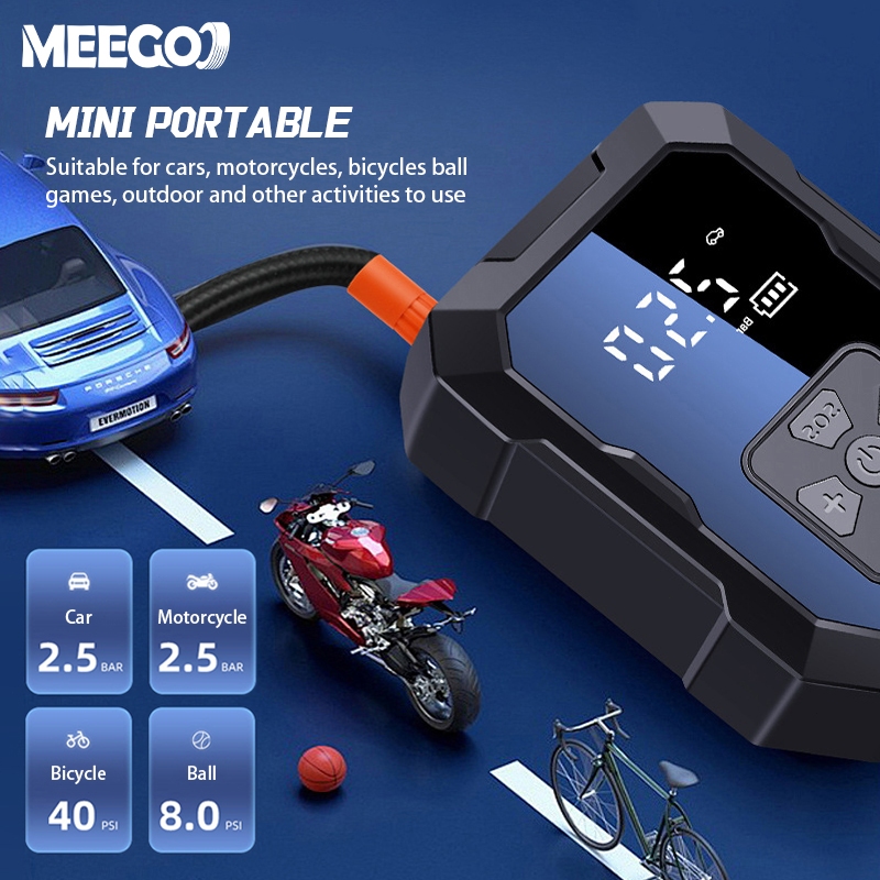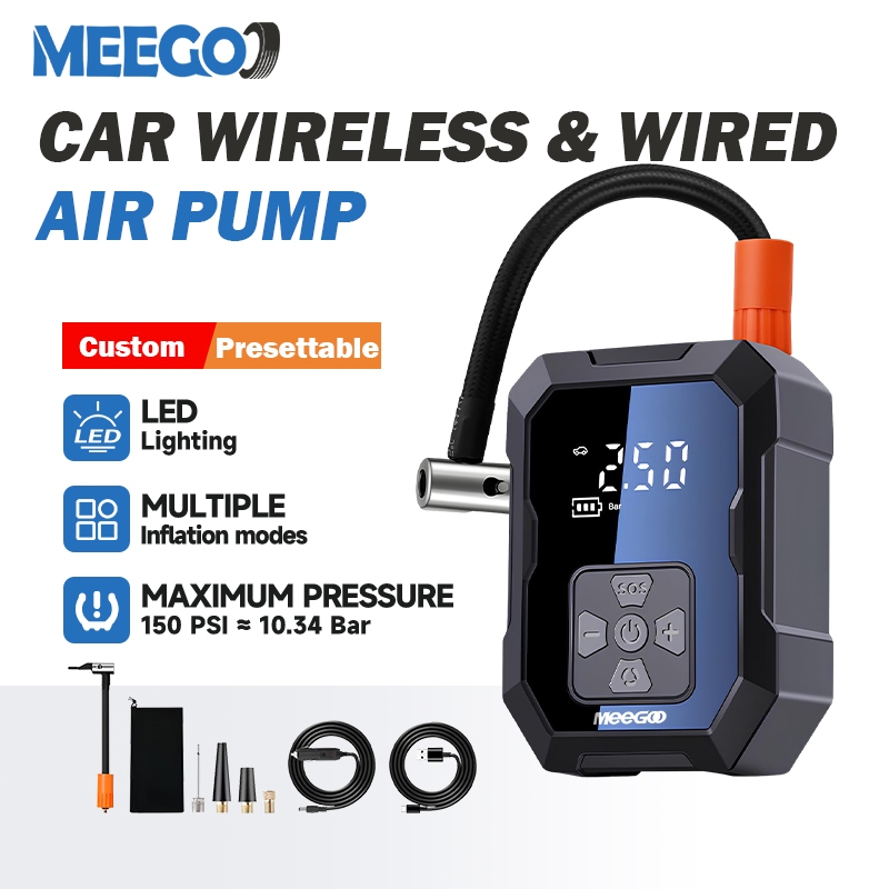 MeeGoo Car Air Pump 4in1 Portable Electric Air Compresso 150PSI Air Inflator With LCD and powerbank