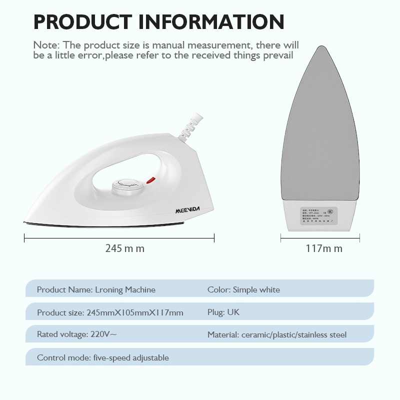 MEEVIDA Dry iron 1200W Portable Quickly Heats Steam Iron With Overheat Protection Handheld