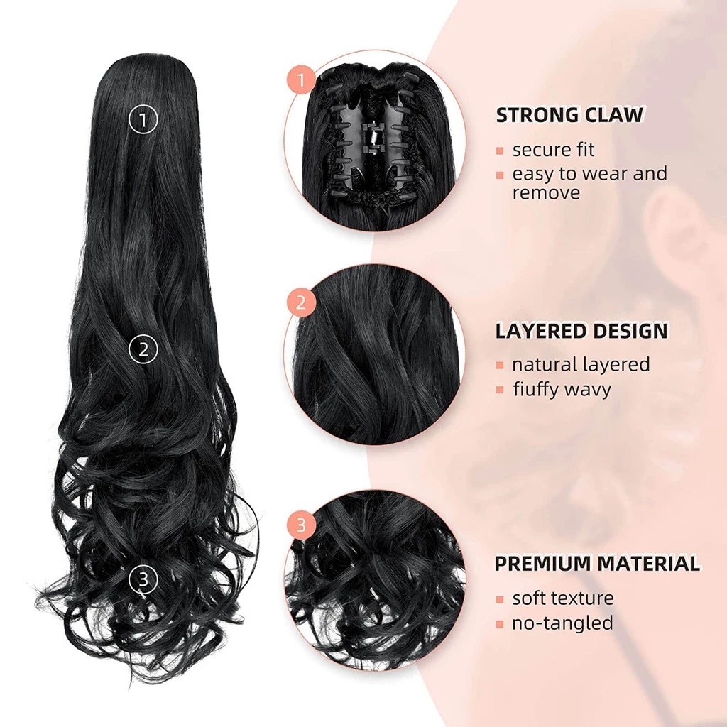 55CM Grab Clip Ponytail Wig Long Curly Hair Wig Fashion Hair Extension Claw Wigs Clip Wigs for Women