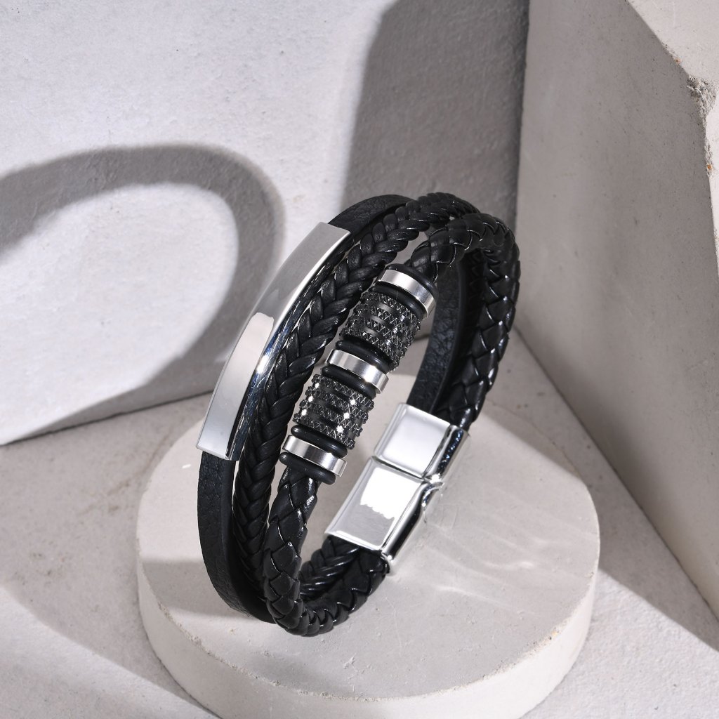 Vnox Leather Bracelet for Men,3-Layer Bracelet Birthday Anniversary Gift for Boyfriend