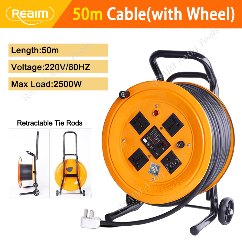 REAIM Cable Reel Extension Wire Heavy Duty 15M/30M/50M 2500W