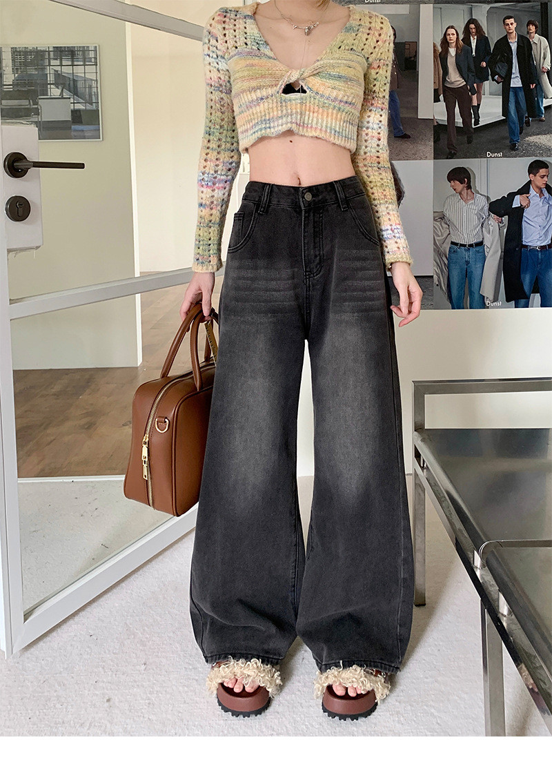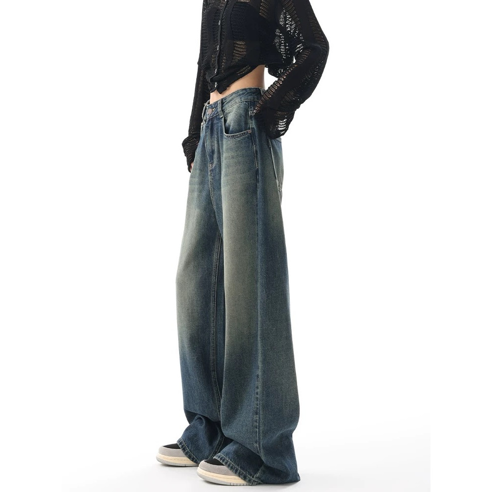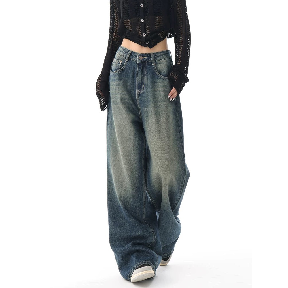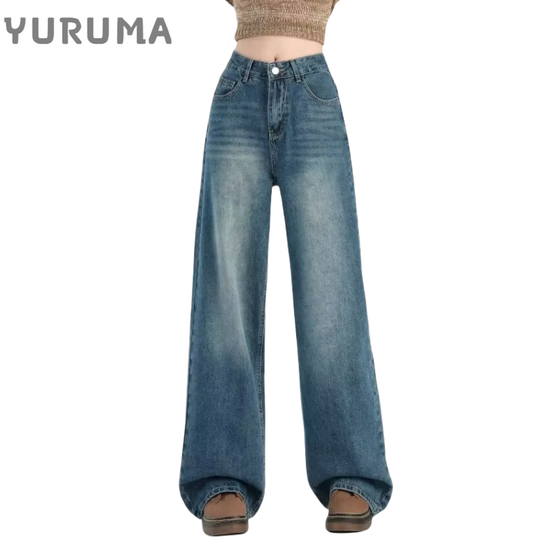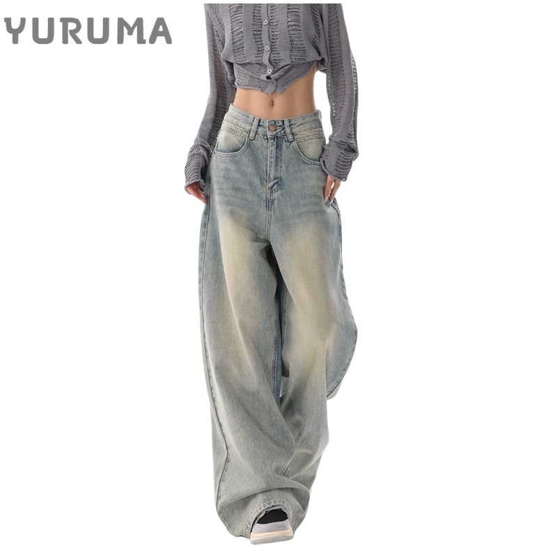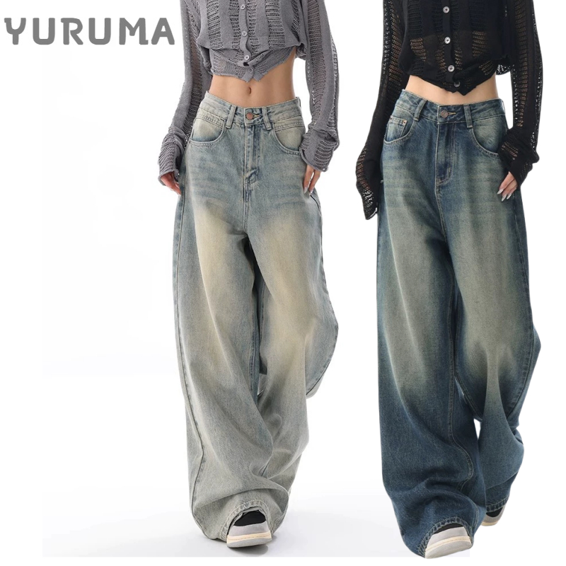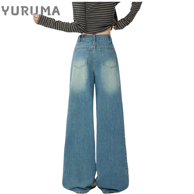 YURUMA S-6XL Korean High Waist Baggy Retro Loose Wide Leg Jeans Trousers Denim Pants