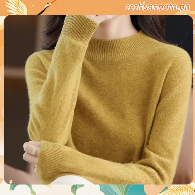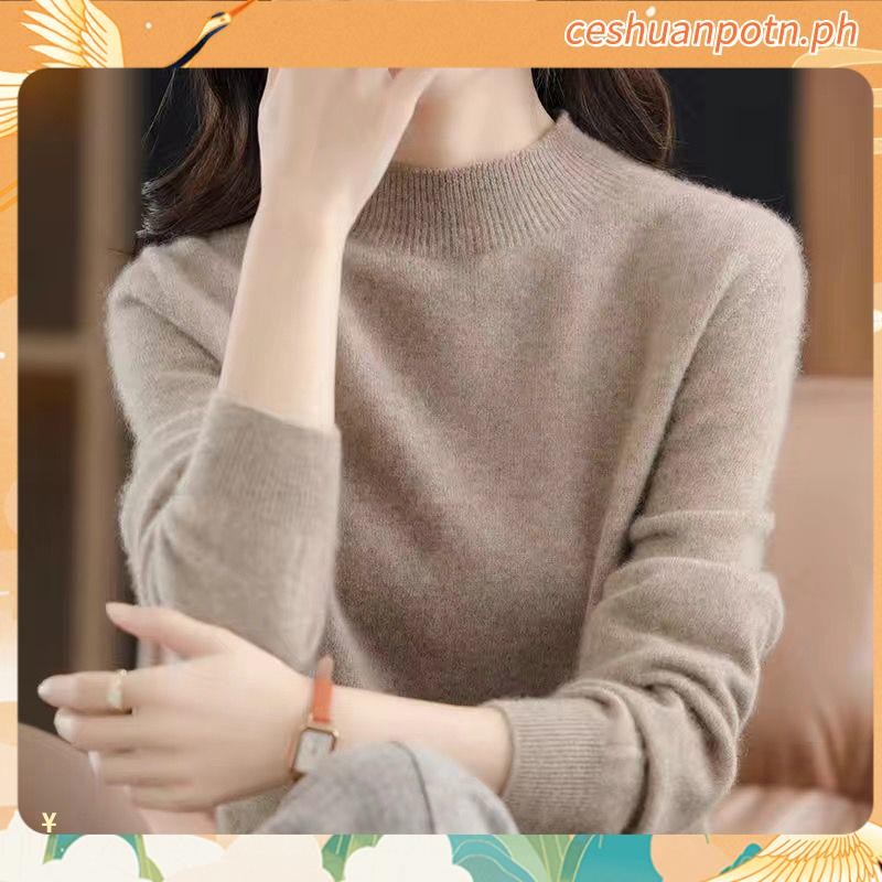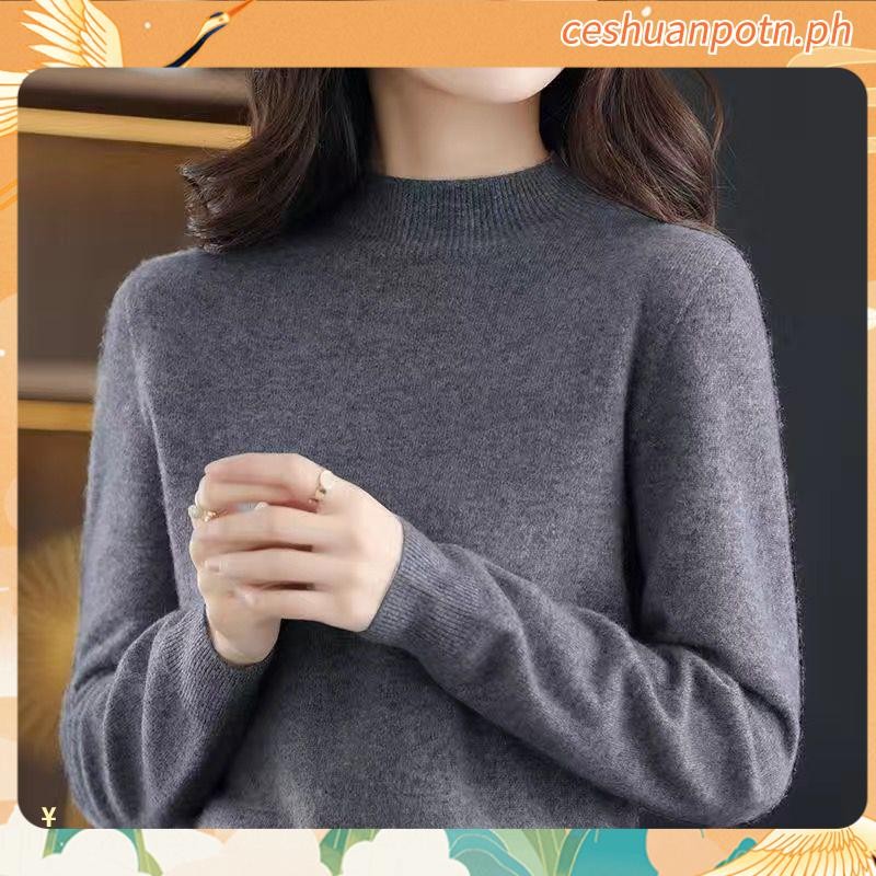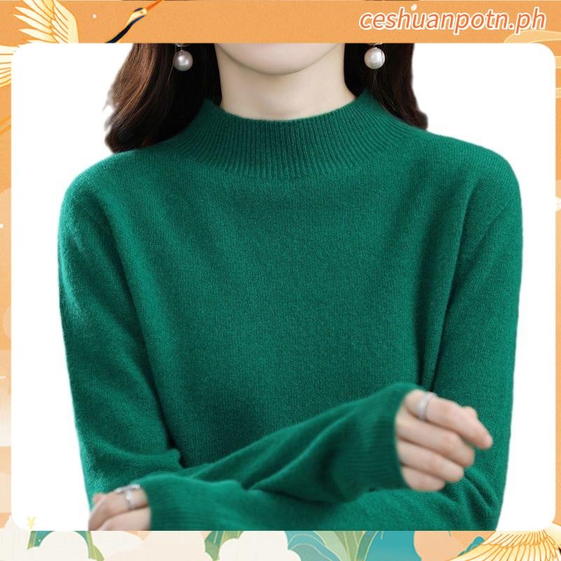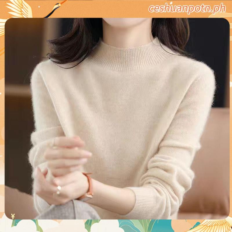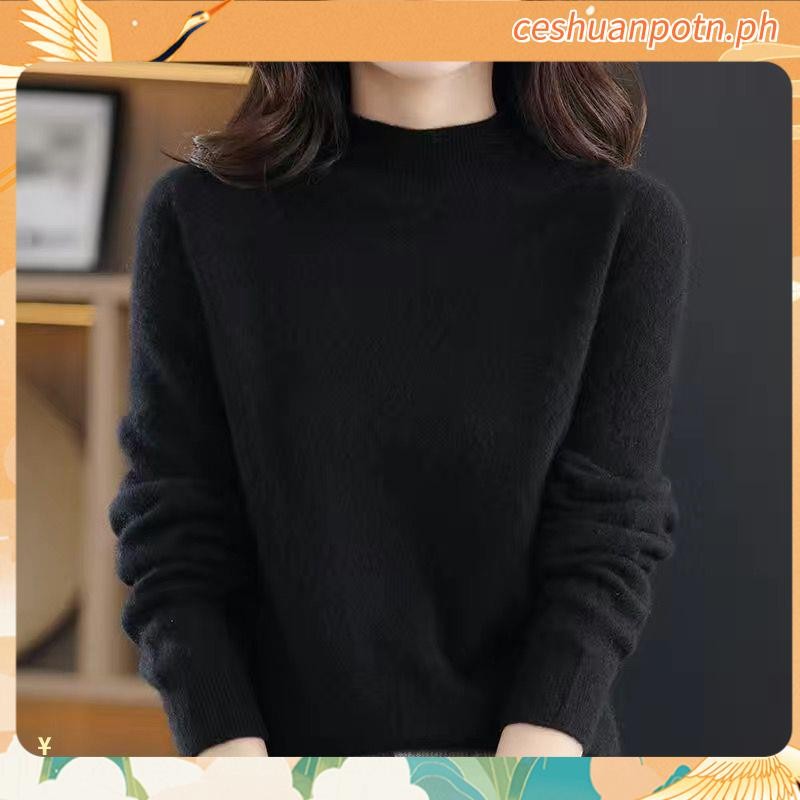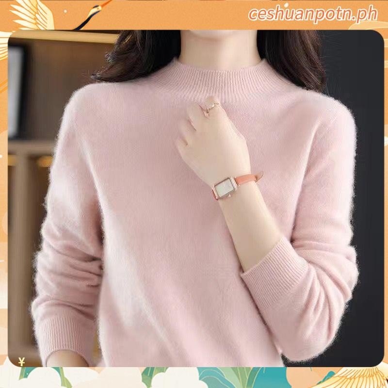 Knitted Tops for Women Plus Size Loose Half Turtleneck Long-sleeved Shirt