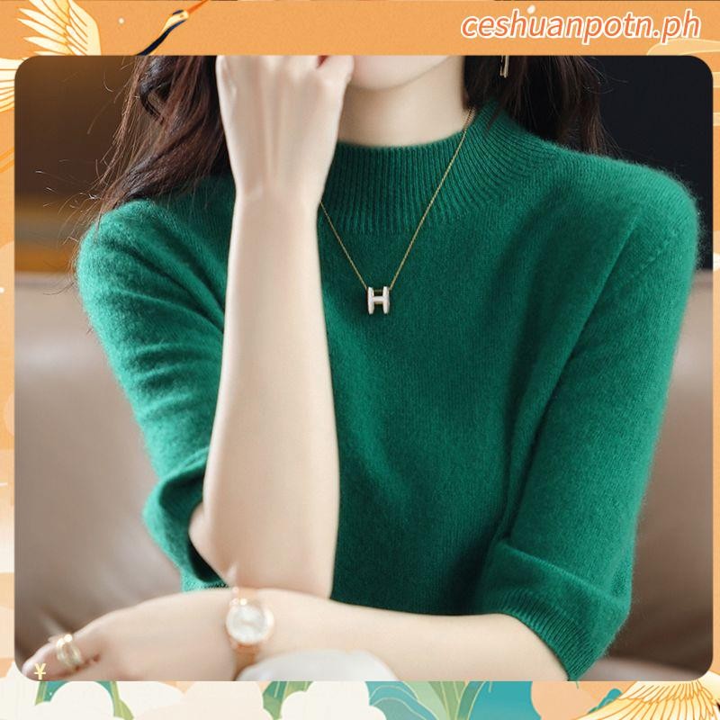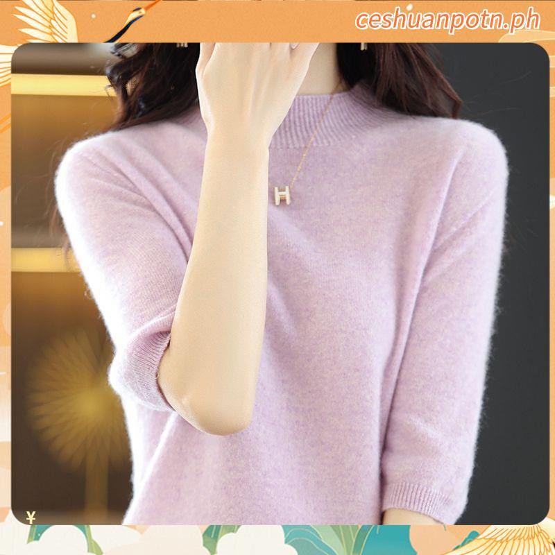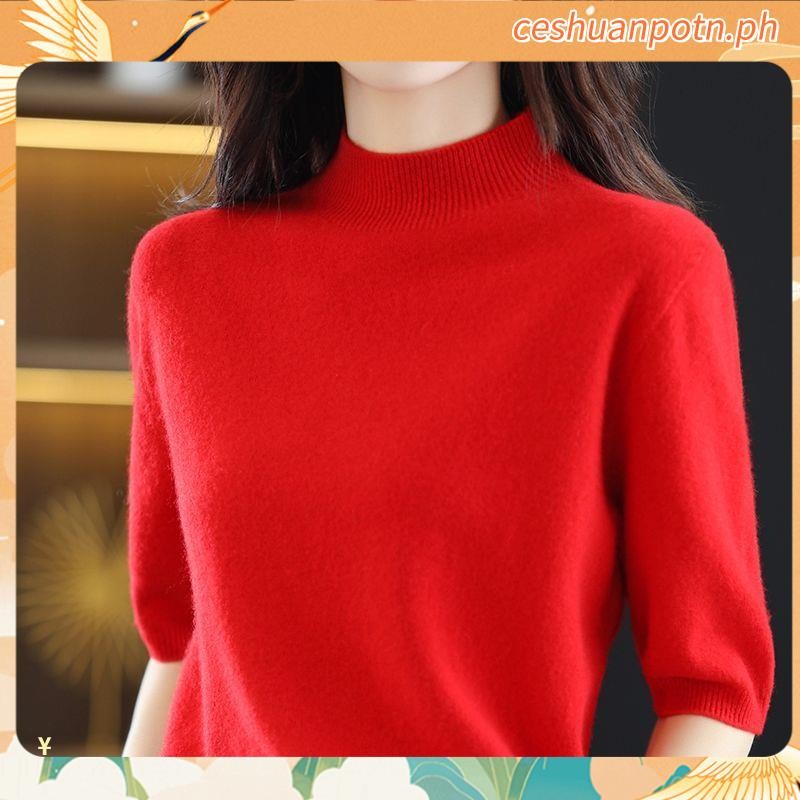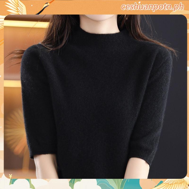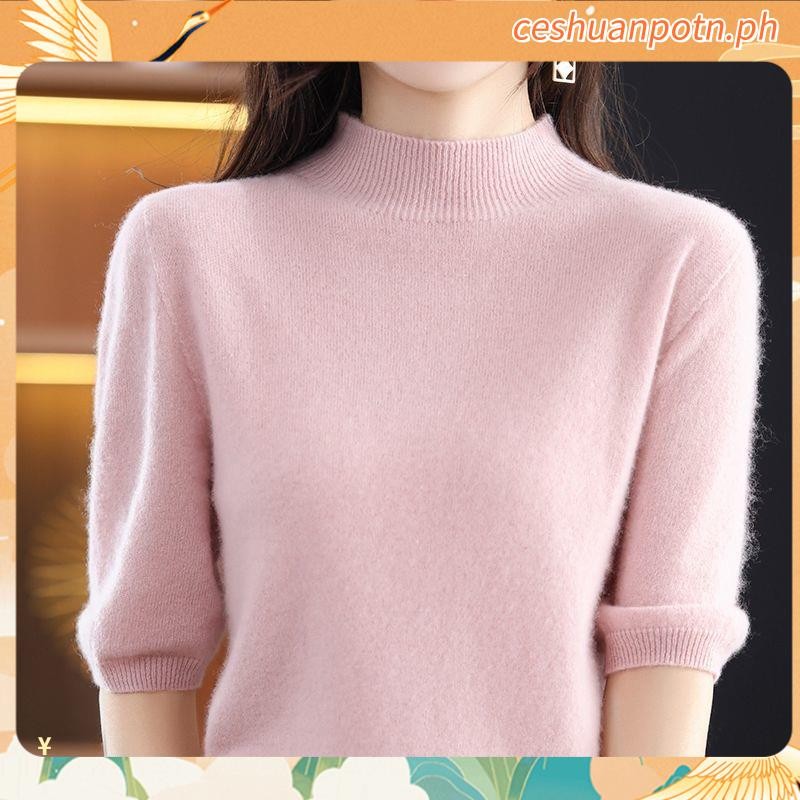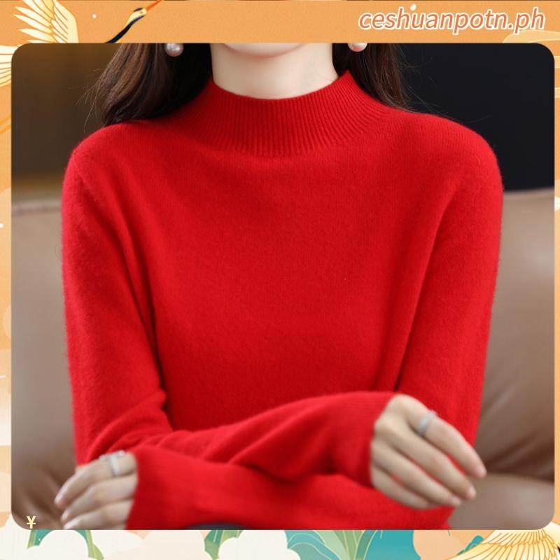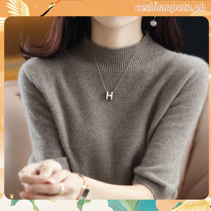 Knitted Tops for Women Plus Size Loose Half Turtleneck Long-sleeved Shirt
