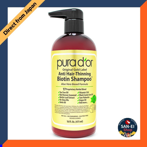 PURA D'OR Original Gold Label Clinically tested, formulated with argan oil, biotin and natural ingredients, sulfate-free, for all hair types, for men & women, packaging may vary. Anti-thinning hair shampoo【Direct from Japan】