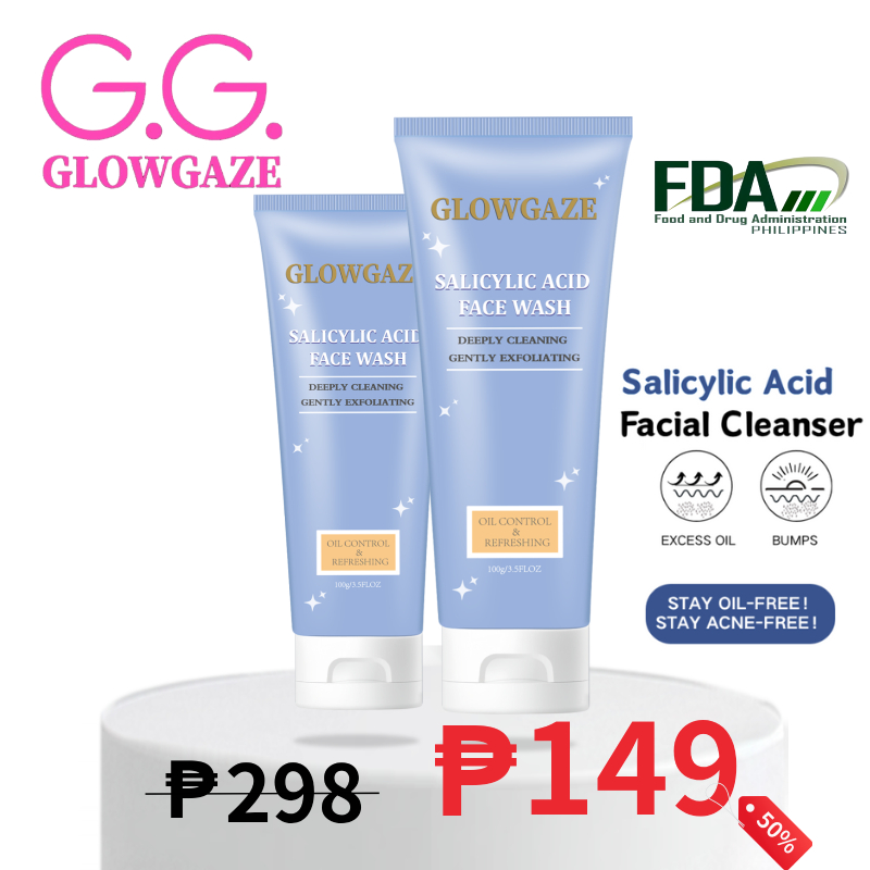 GLOWGAZE B1T1 Anti-Acne Facial Cleanser Gentle Soothing Clinical-Grade Hypoallergenic 100ml+100ml