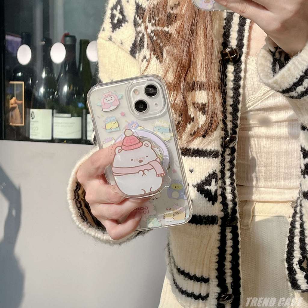 Cartoon Cute Sumikko Gurashi Magnetic Bracket Phone Case For iPhone 15 14 13 12 11 Pro Max Shockproof Acrylic Back Soft Cover Fundas