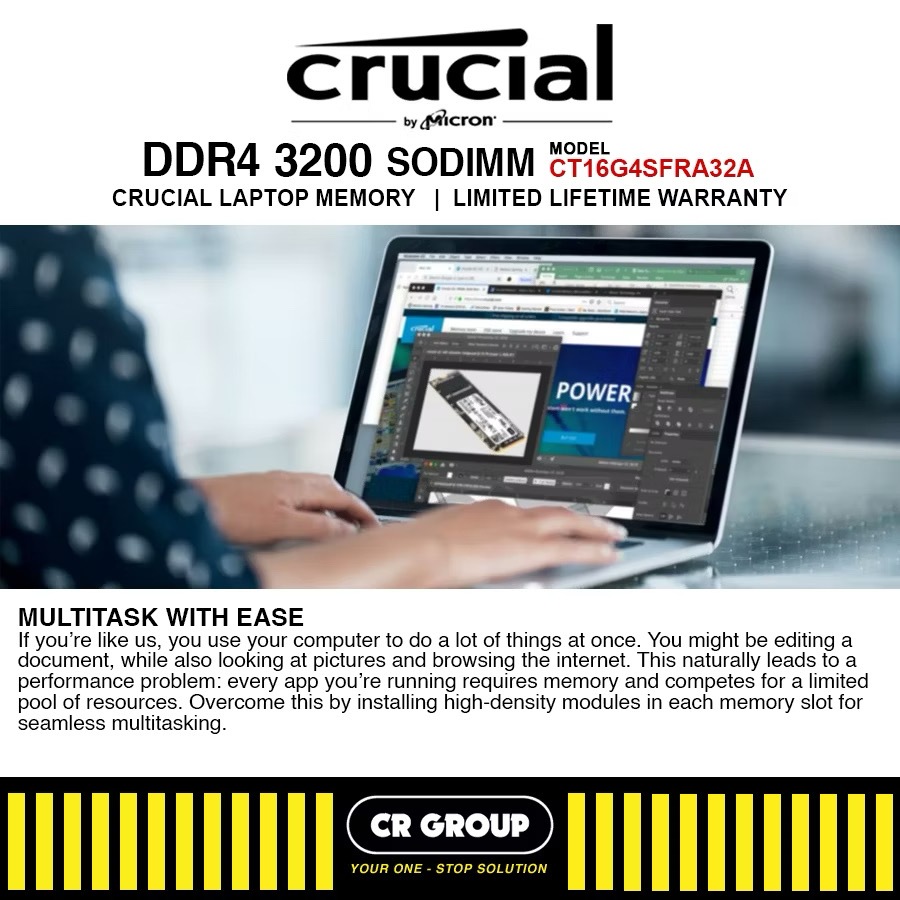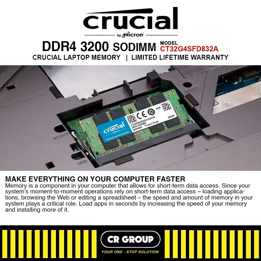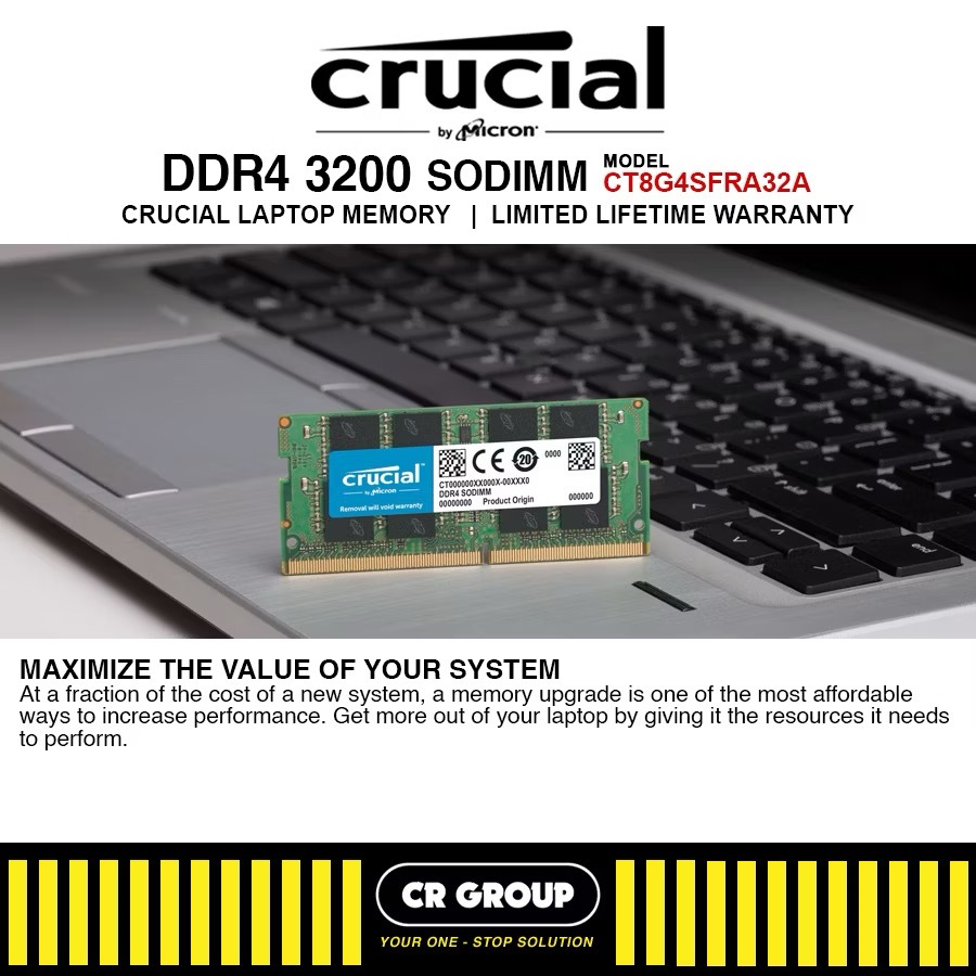 Crucial 8GB DDR4 3200MHz CL22 1.2V Non-ECC SODIMM Notebook Memory CT16G4SFRA32A