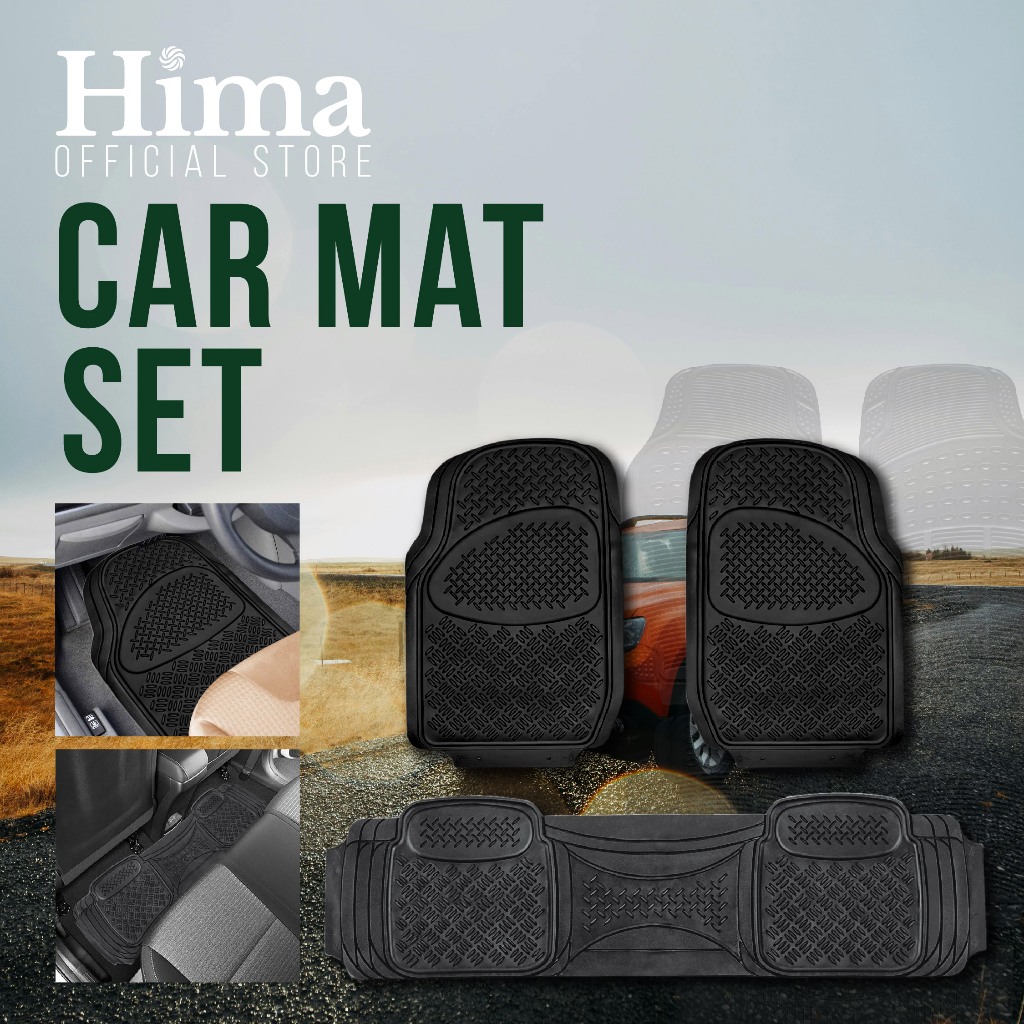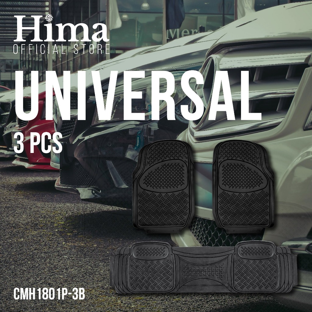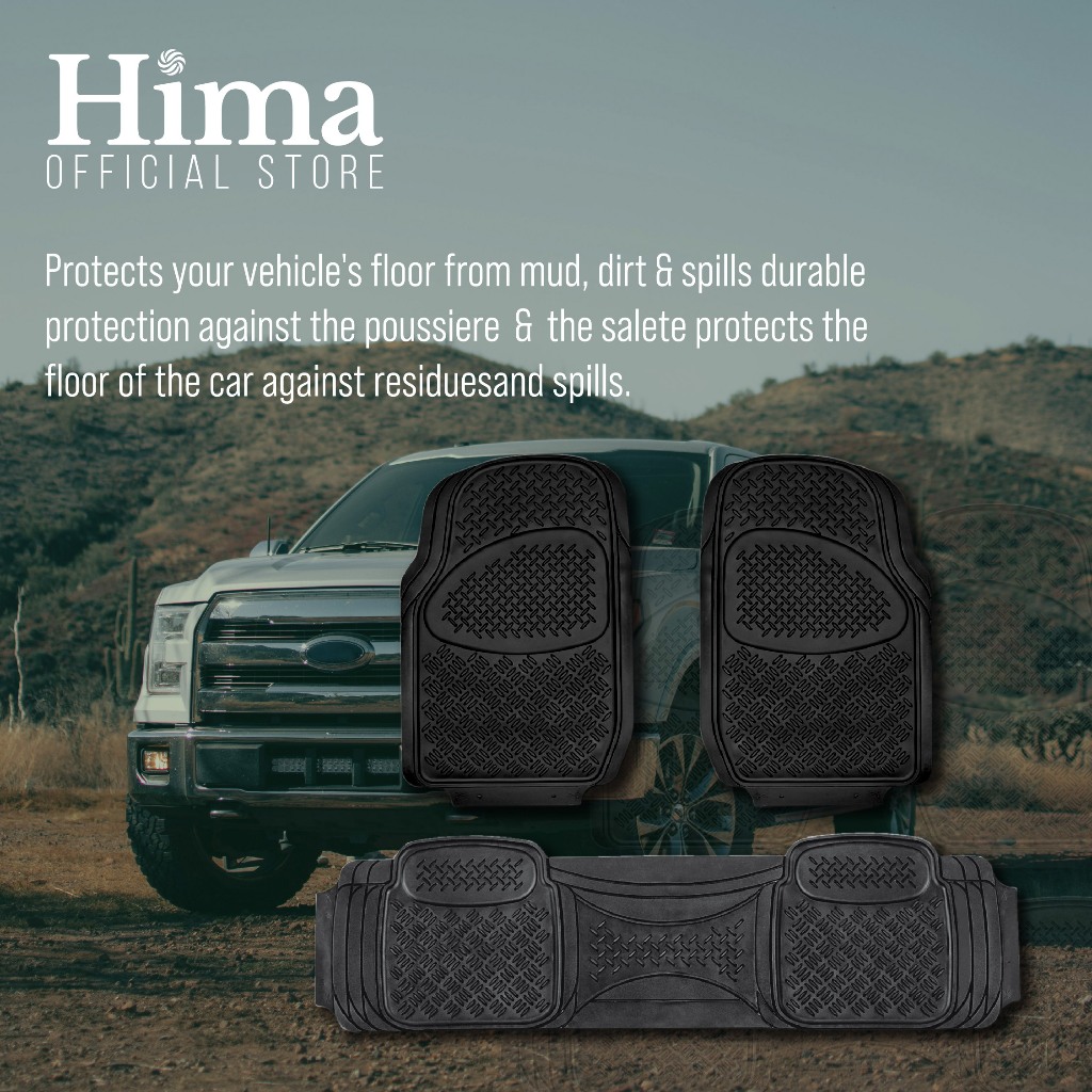 HIMA All-Weather Rubber Car Floor Mats 3pcs Set Universal Trim-to-Fit Heavy Duty Car Mat