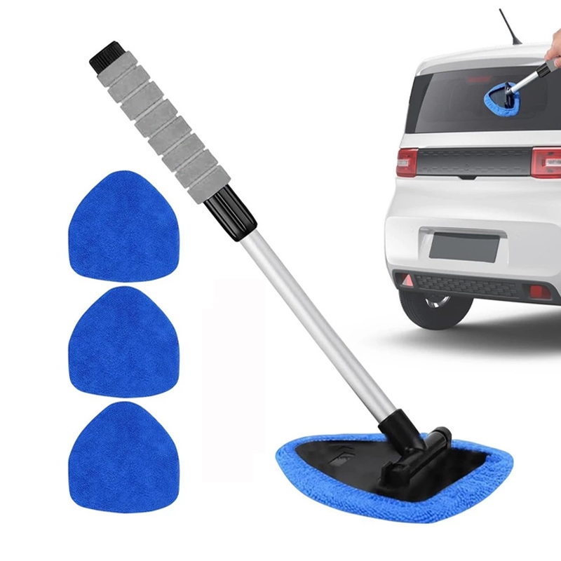 Car Window Cleaner Brush Kit Microfiber Windshield Cleaning Tool Auto Interior Glass Wash Wiper Long Handle Cleaning Brush Car Cleaning Kit