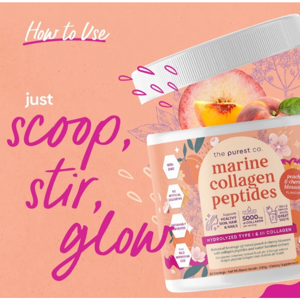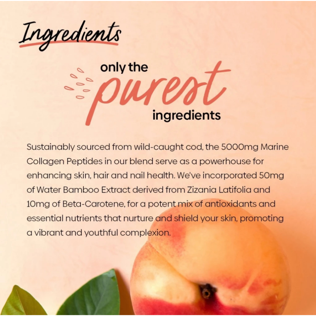 Purest Co Marine Collagen Peptides Peach (Glowing Skin, Lustrous Hair & Nails)