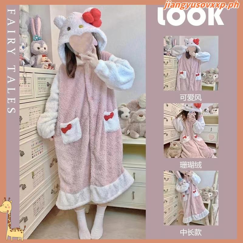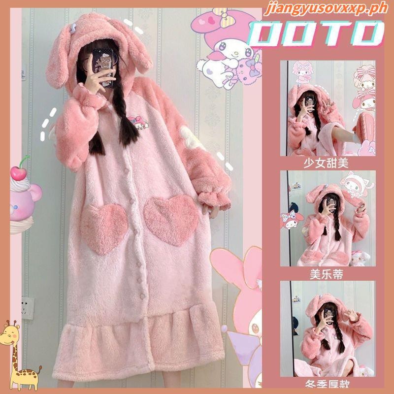 Cute New Sanrio Melody Robe Thickened Coral Velvet Pajamas 2022 Winter Trend Warm Facecloth Nightgown Female