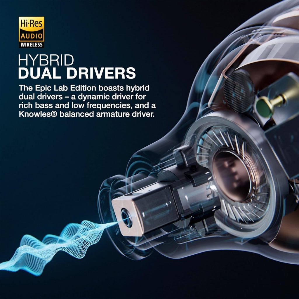 JLab Epic Lab Edition True Wireless Earbuds, Hybrid Dual Drivers, Spatial Audio