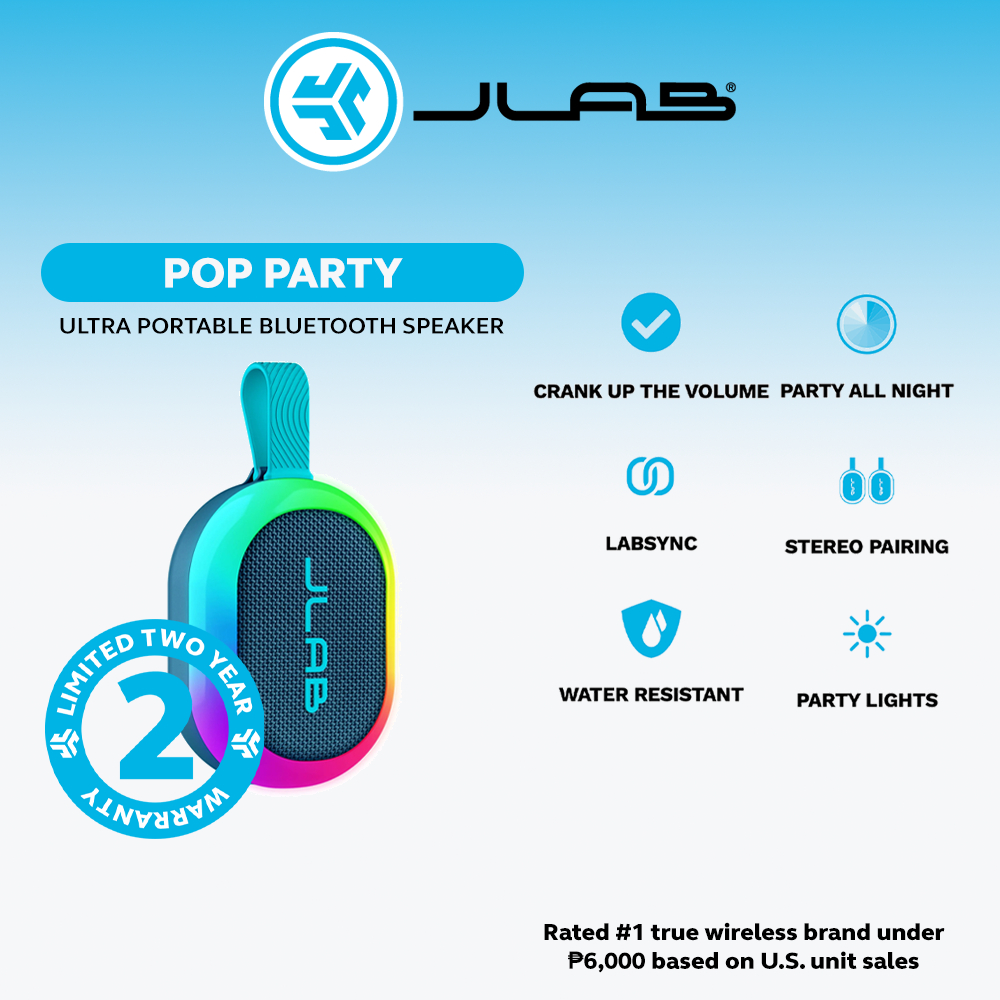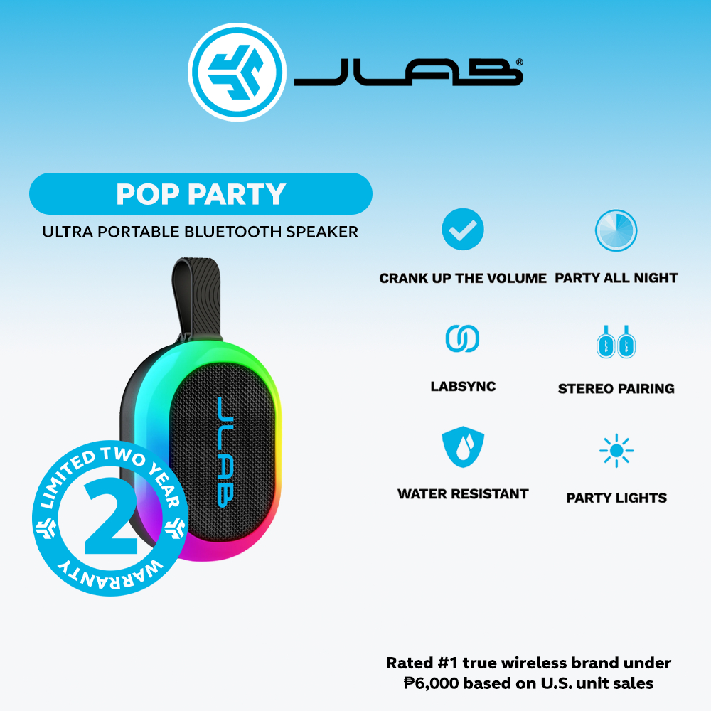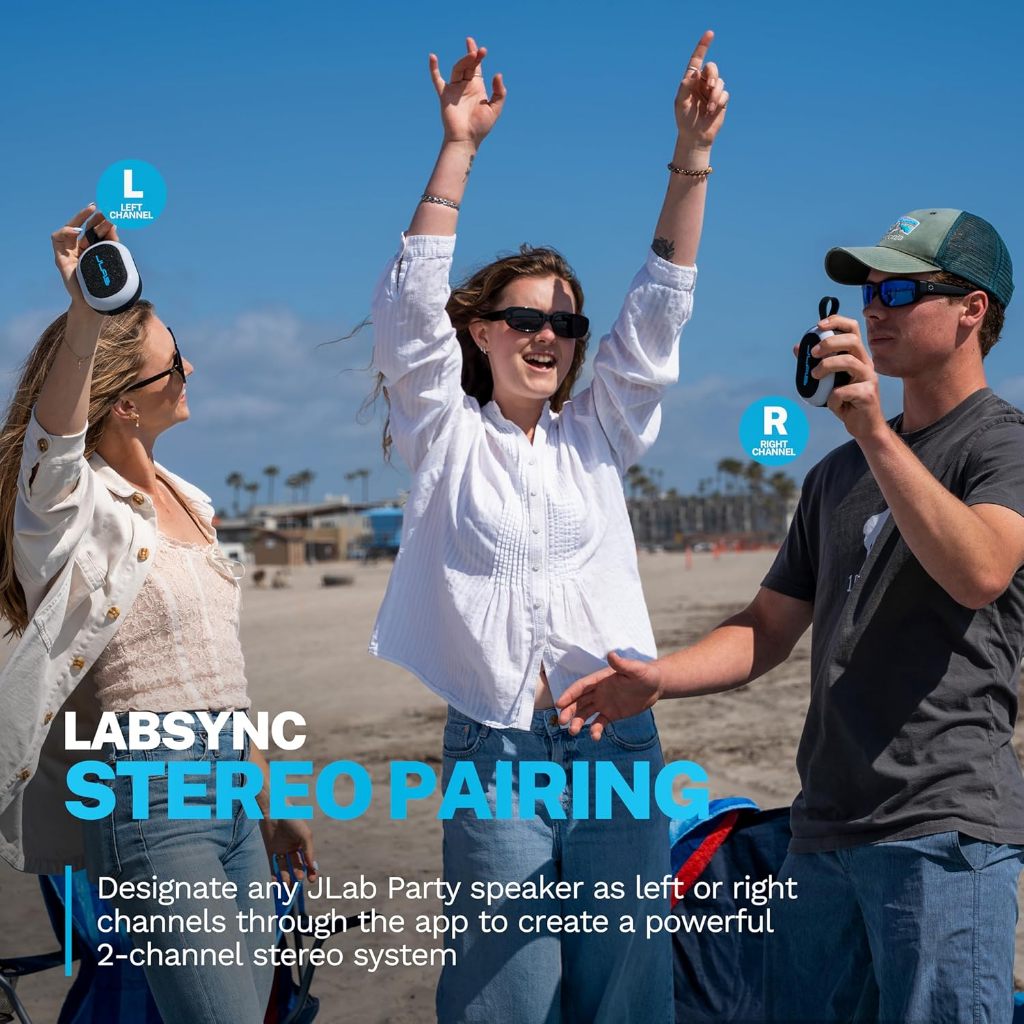 JLab Pop Party Portable Bluetooth Speaker, Black, 8+ Hours of Playtime, IP55 Waterproofing