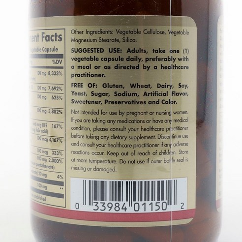 [SOLGAR] B-Complex "100" – 100 Vegetable Capsules | SHIPPING FROM KOREA
