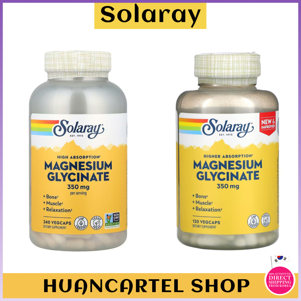 [Solaray] Magnesium Glycinate 350mg – High Absorption for Bone, Muscle & Relaxation | 120 / 240 VegCaps | Shipping from Korea