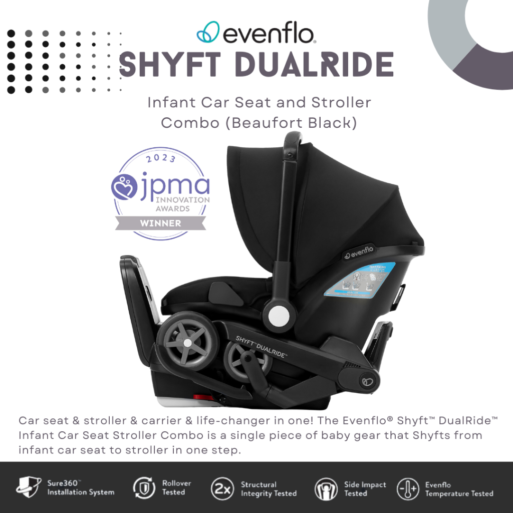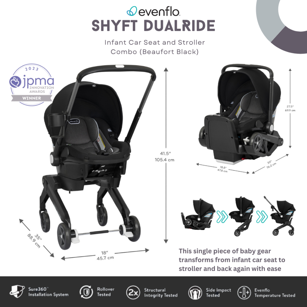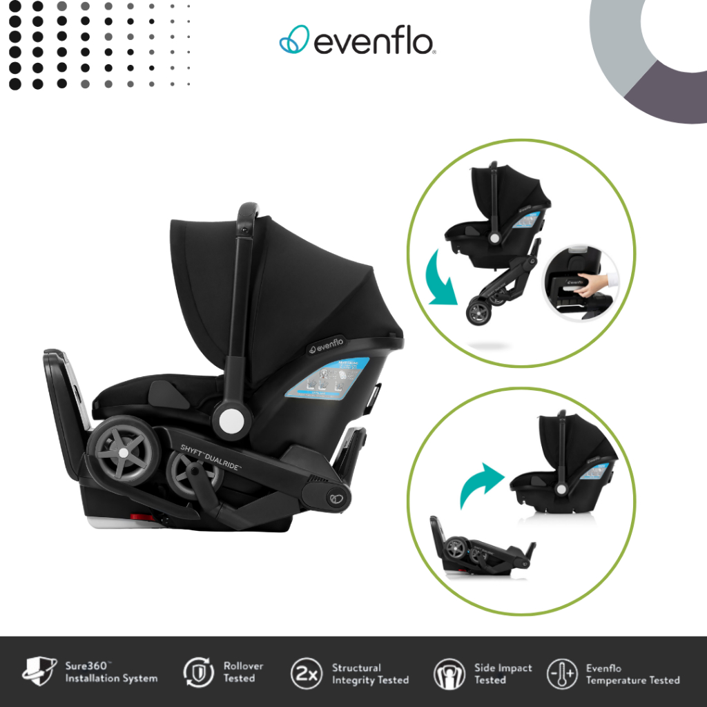 Evenflo Shyft DualRide Infant Car and Stroller Combo, Beaufort Black