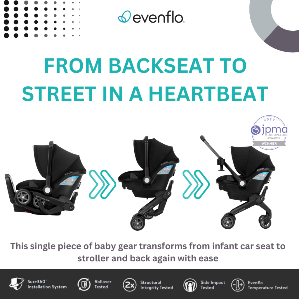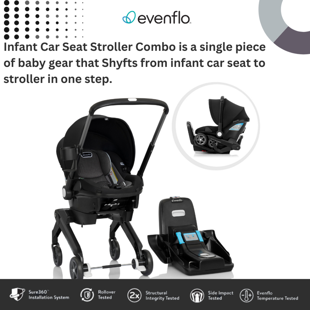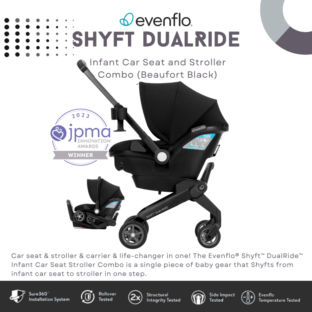 Evenflo Shyft DualRide Infant Car and Stroller Combo, Beaufort Black