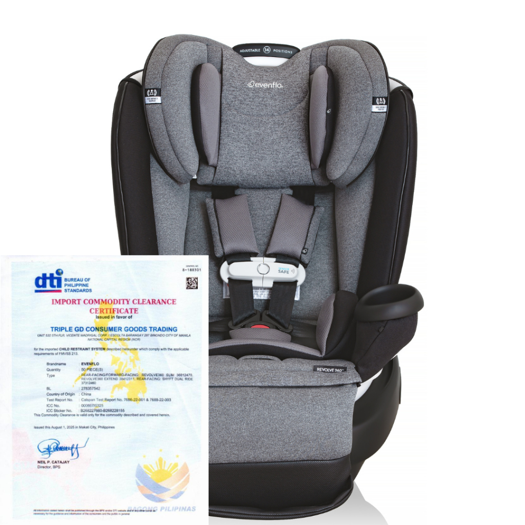 Evenflo Car Seat Revolve360 Rotational All-In-One Convertible Car Seat With Sensor safe Grey