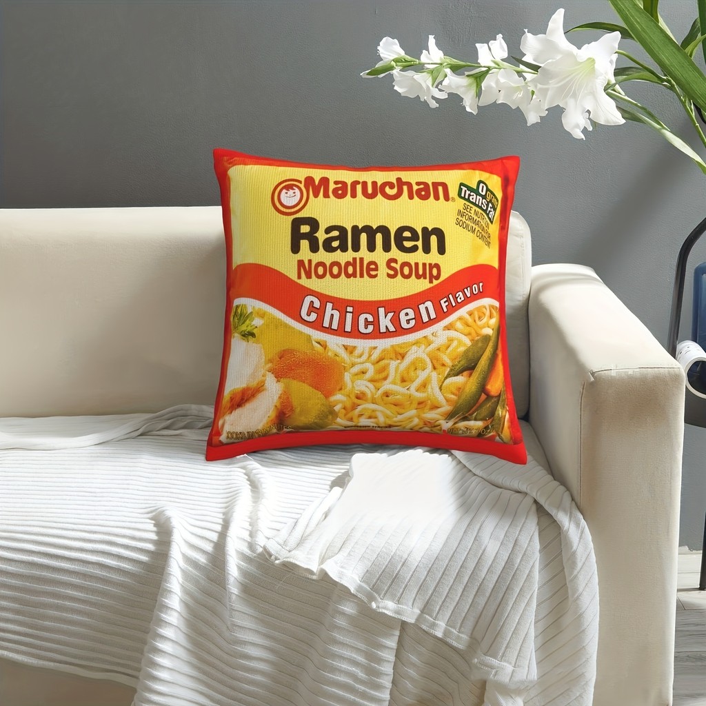[Cozy Ramen Pillow Cover] Maruchan Ramen Noodle Soup Design Pillow Cover - 1pc 18x18 Inches for Living Room & Bedroom Decor, No Insert Single Side Printed