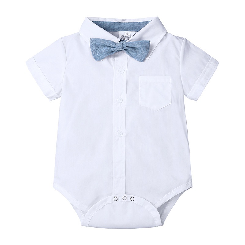 Baby Boy Baptismal Christening Clothes Set Gentleman Suit Bow Tie Shirt Top + Jumper Shorts Clothing Sets for 0-3 Years