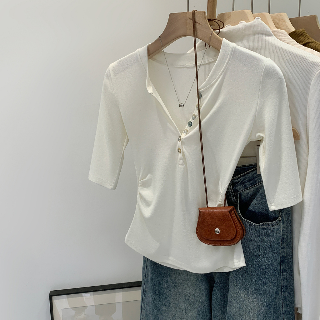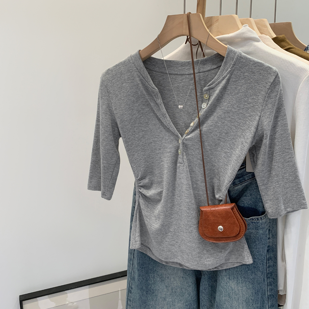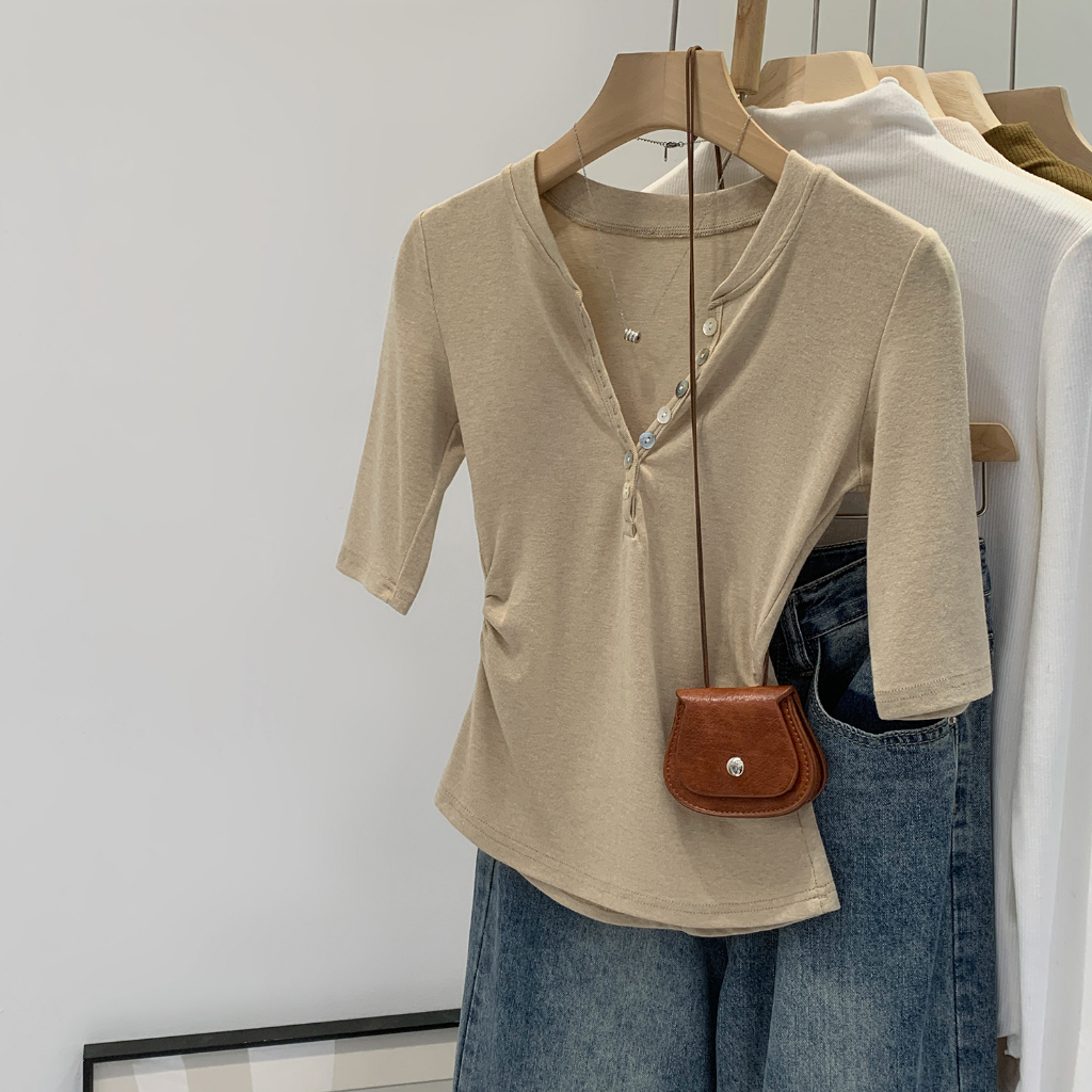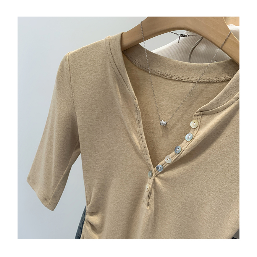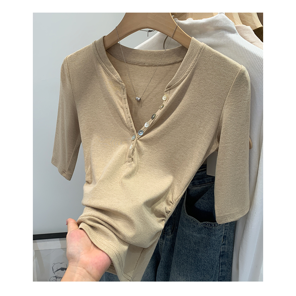 92958 Button Decoration Slim Fit Half Sleeve T-Shirt Women