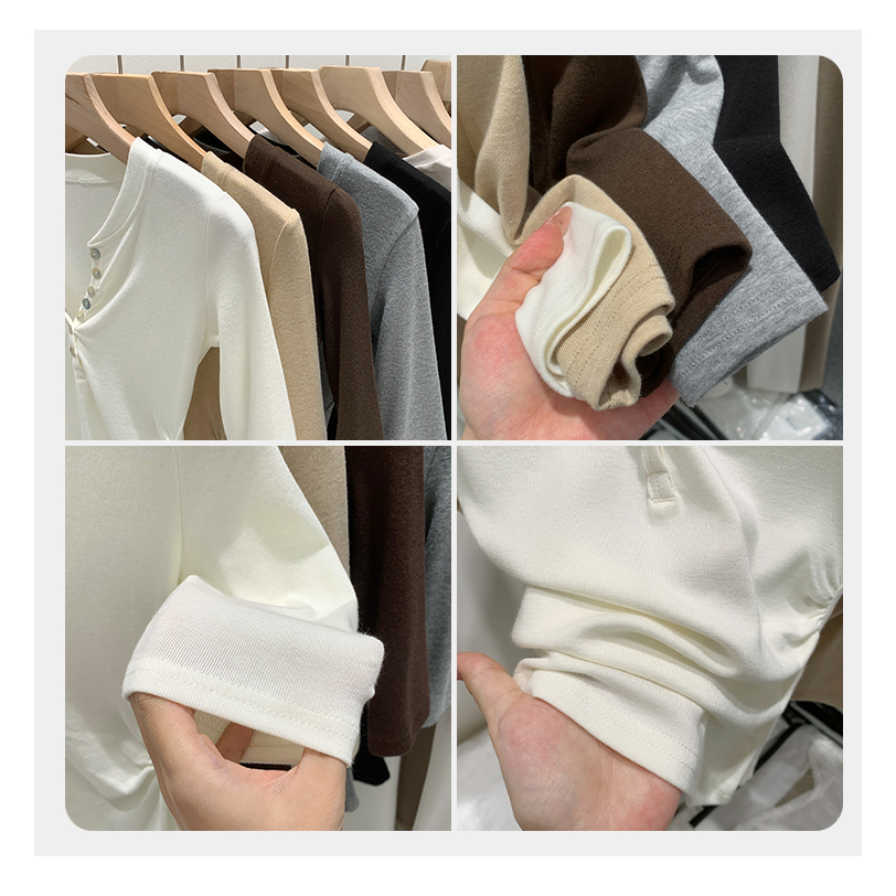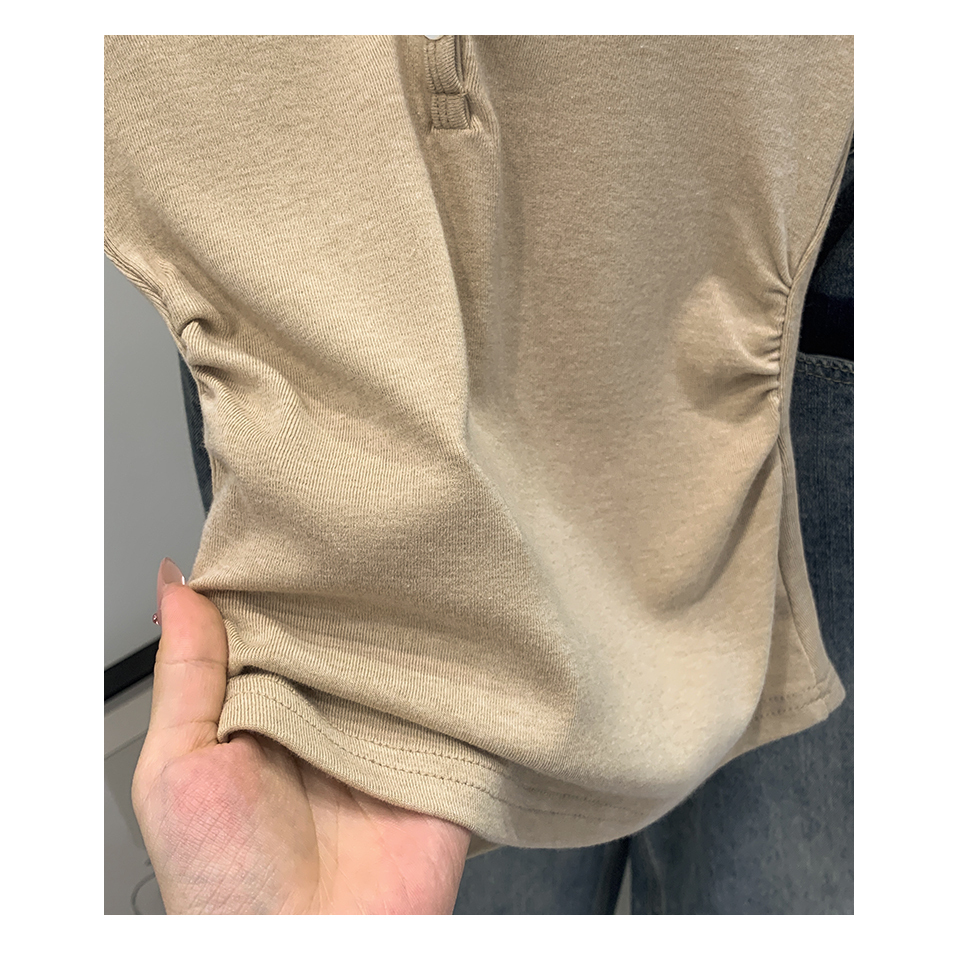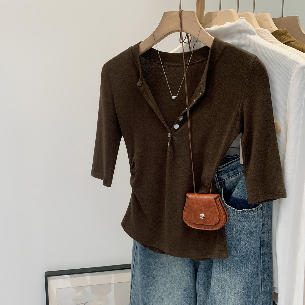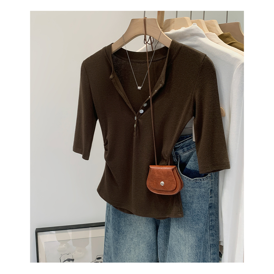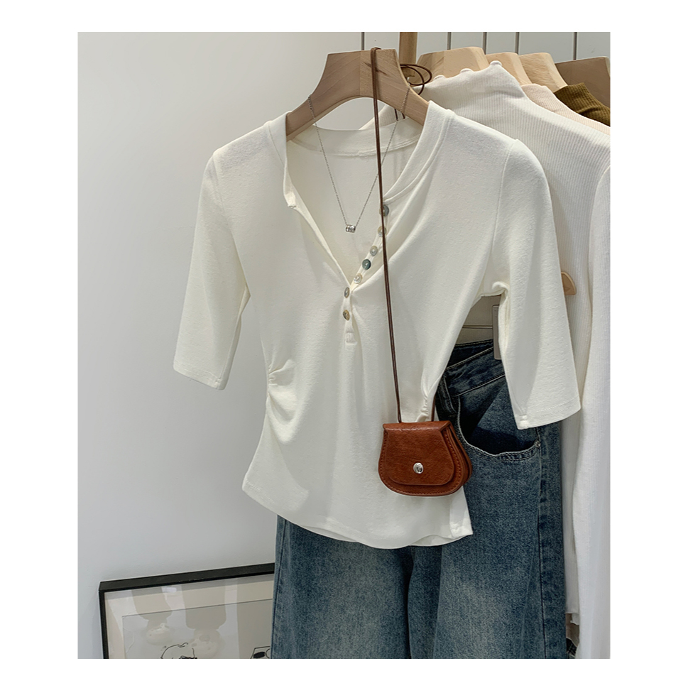 92958 Button Decoration Slim Fit Half Sleeve T-Shirt Women