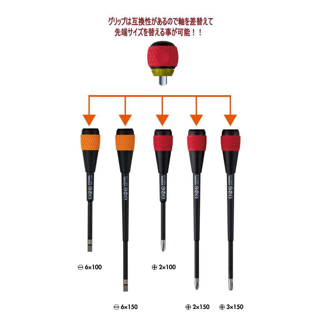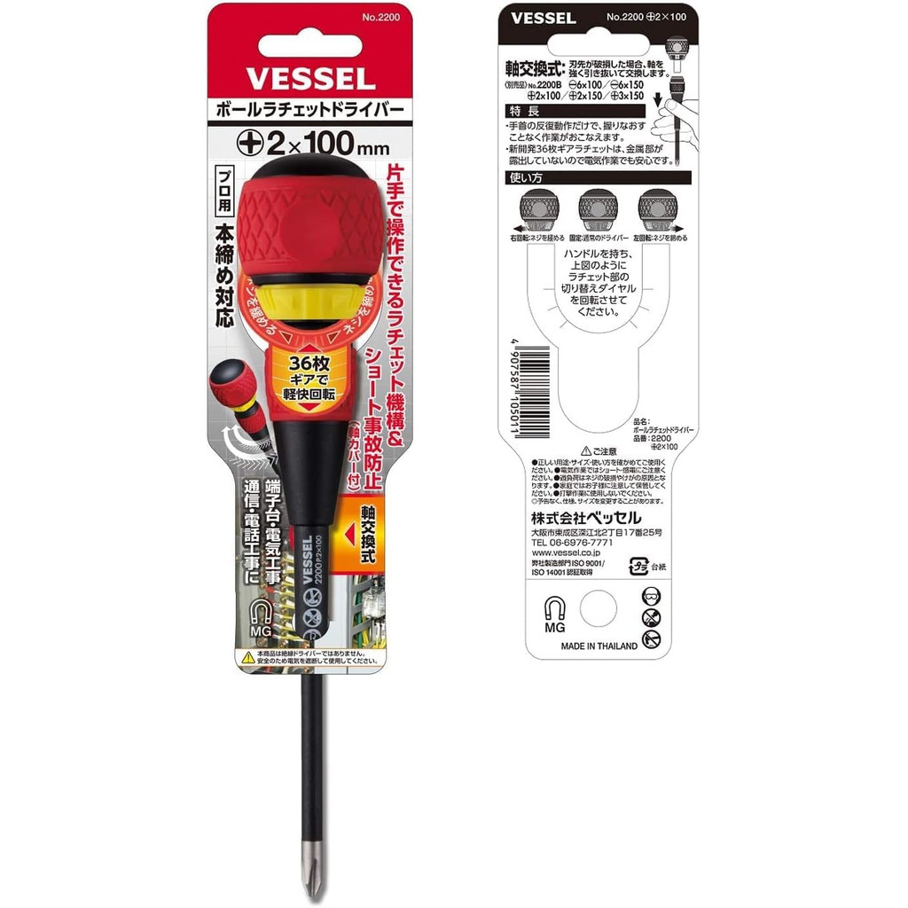 VESSEL Ball Ratchet Screwdriver 2200 +2x100 - Precision Hand Tool for Efficient Repairs [Direct From Japan]