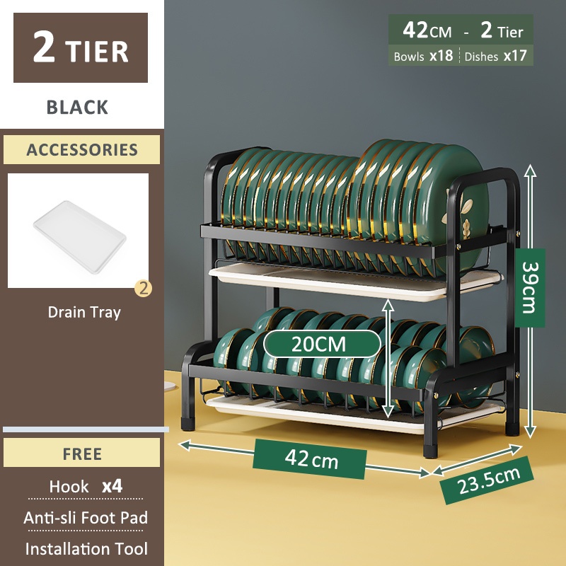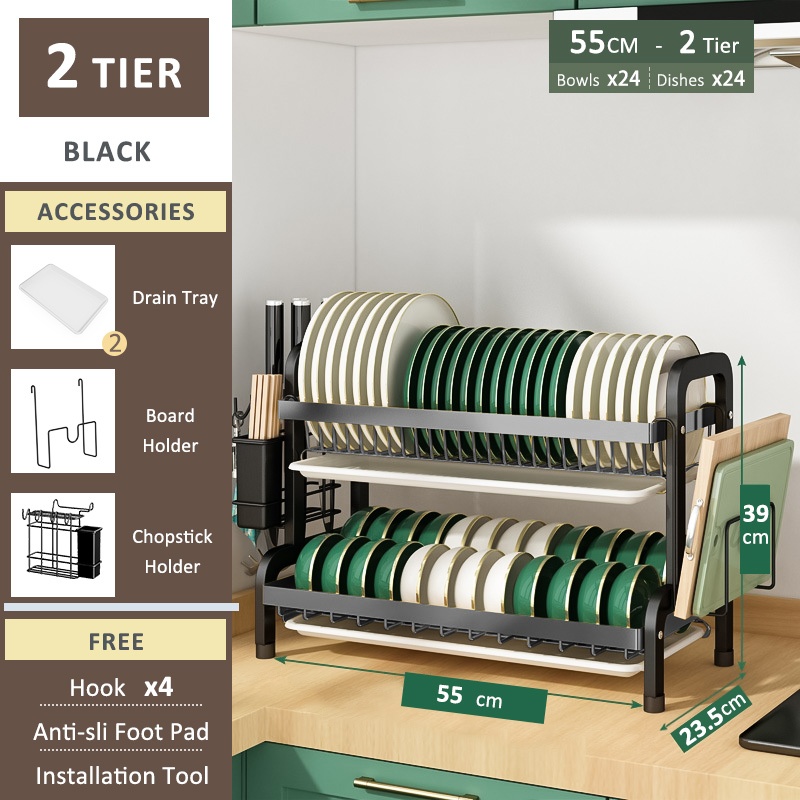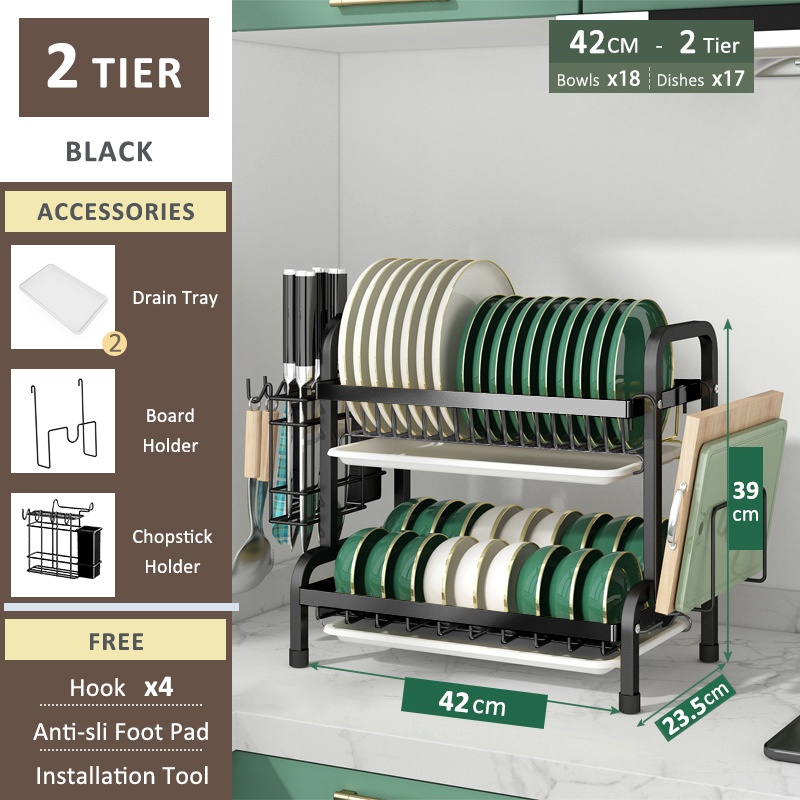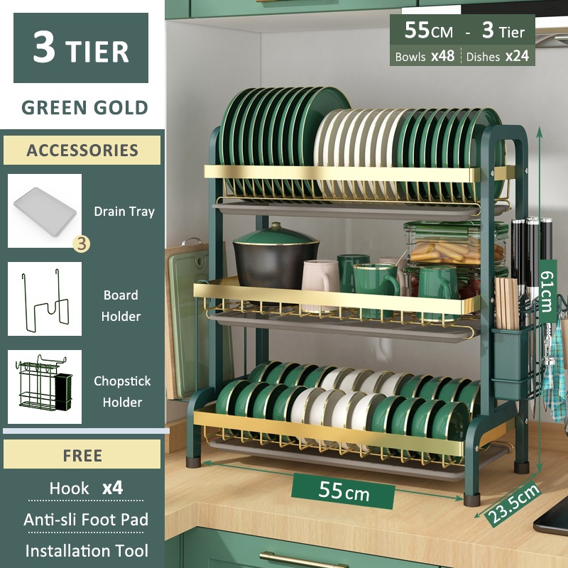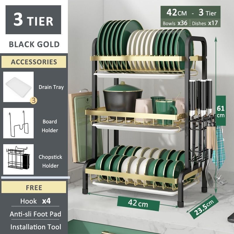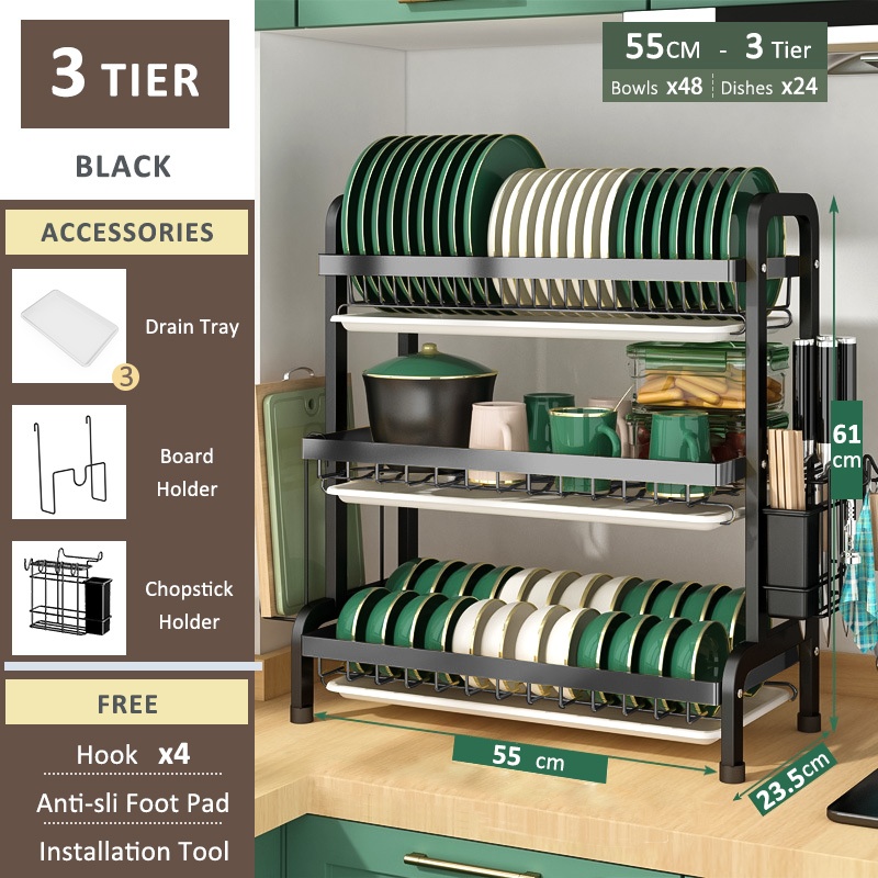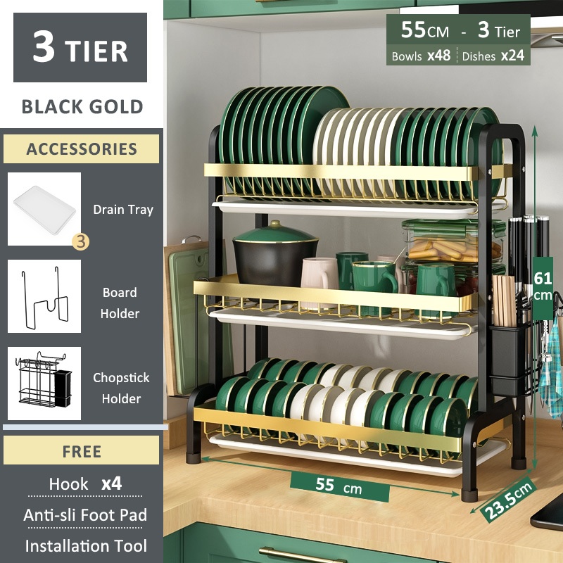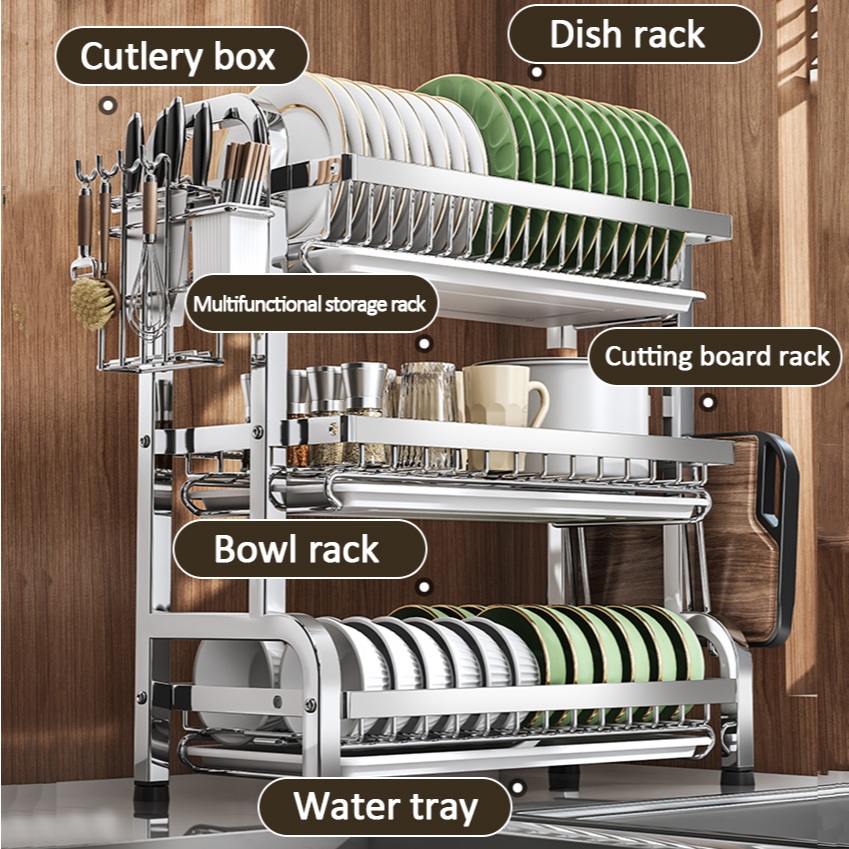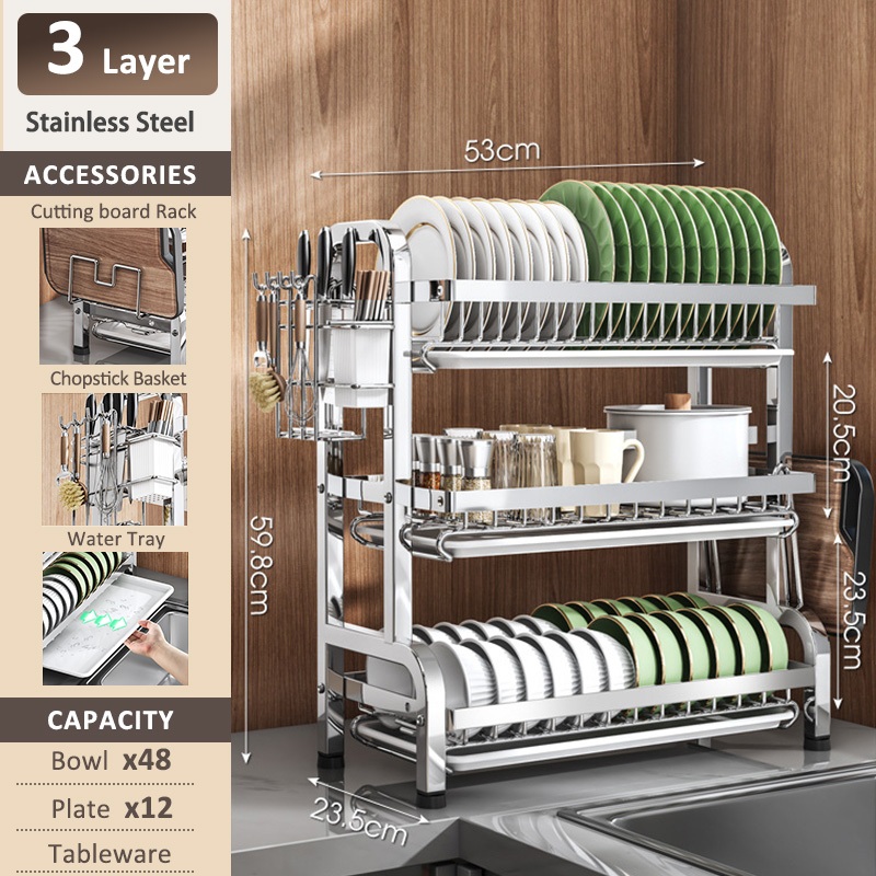 SimpleJoy Stainless Steel Dish Rack 3 Layers 304 Dish Drainer Kitchen Storage Organizer