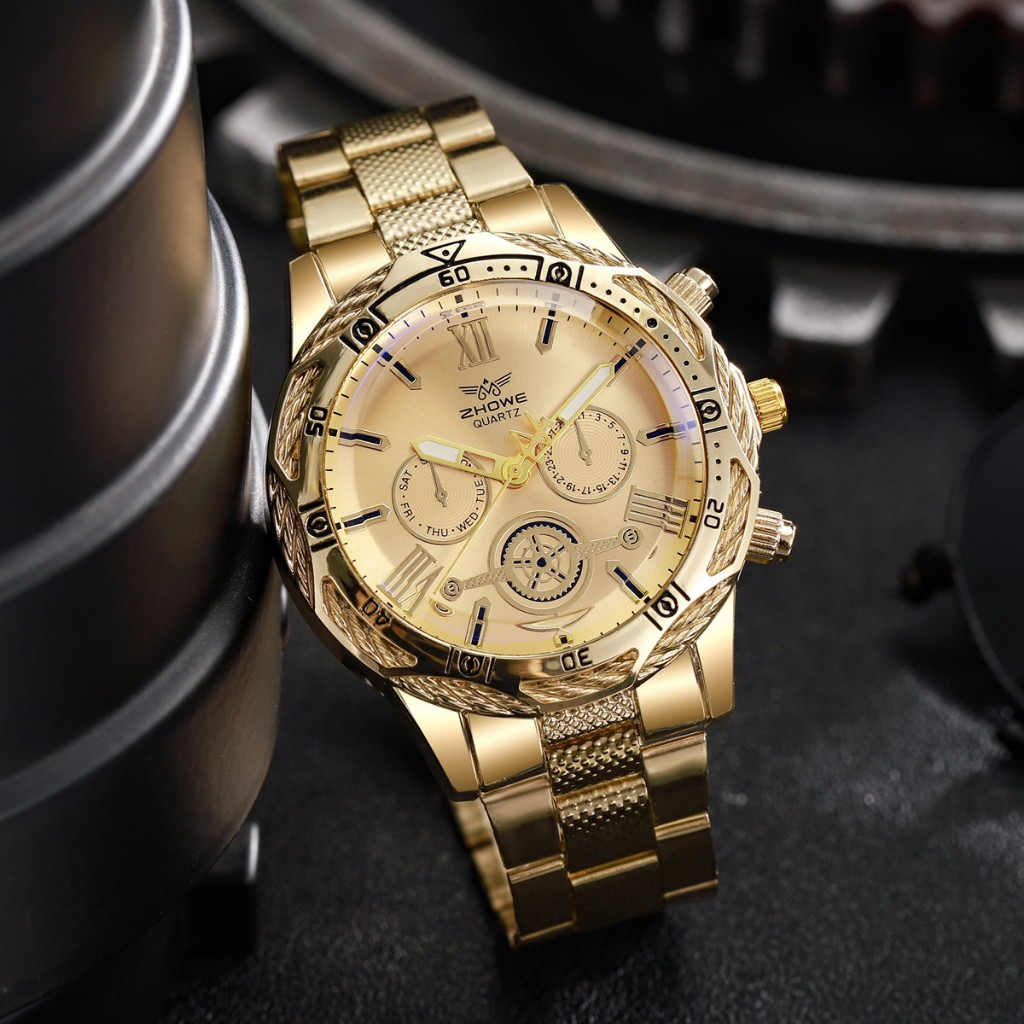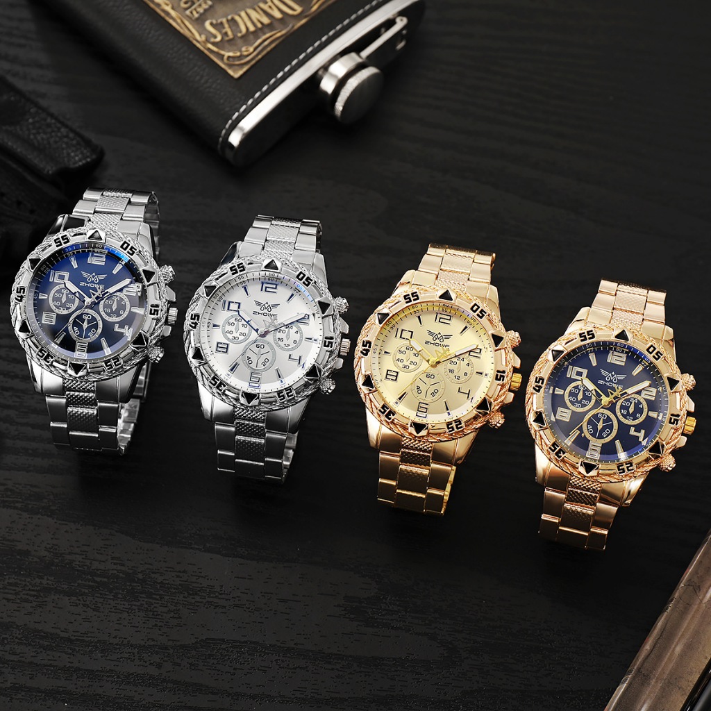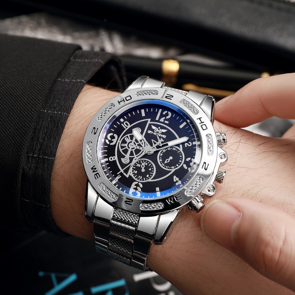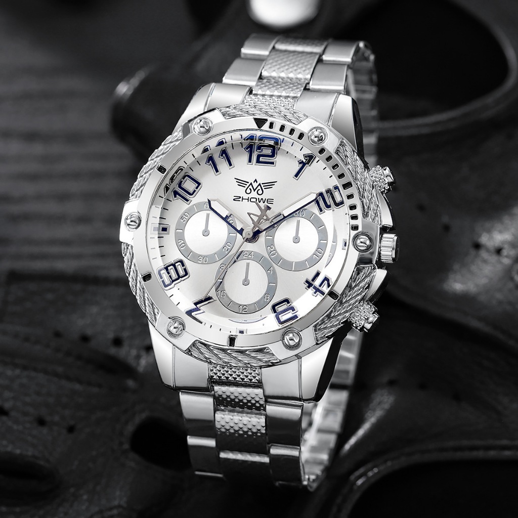 Business Men's Watches Mineral Glass Watches Steel Strap Quartz Watches Digital Scale 3-Eye Watch