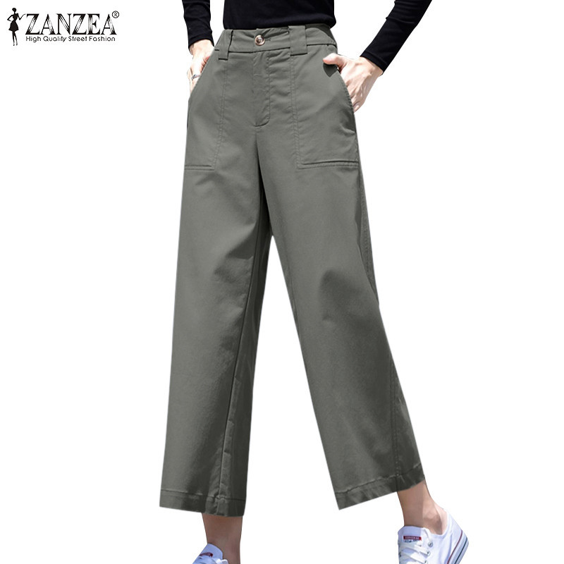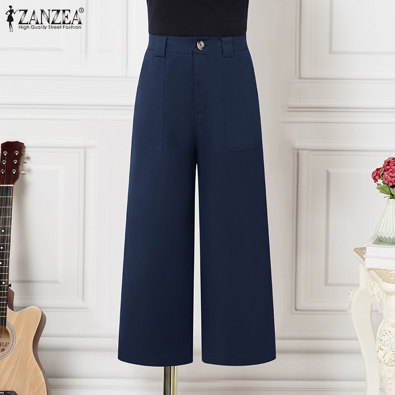 ZANZEA Celmia Women Office Casual High Waist Pocket Solid Loose Pants