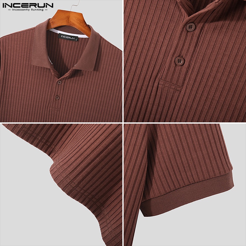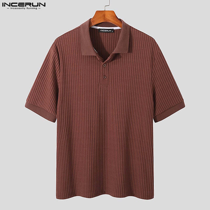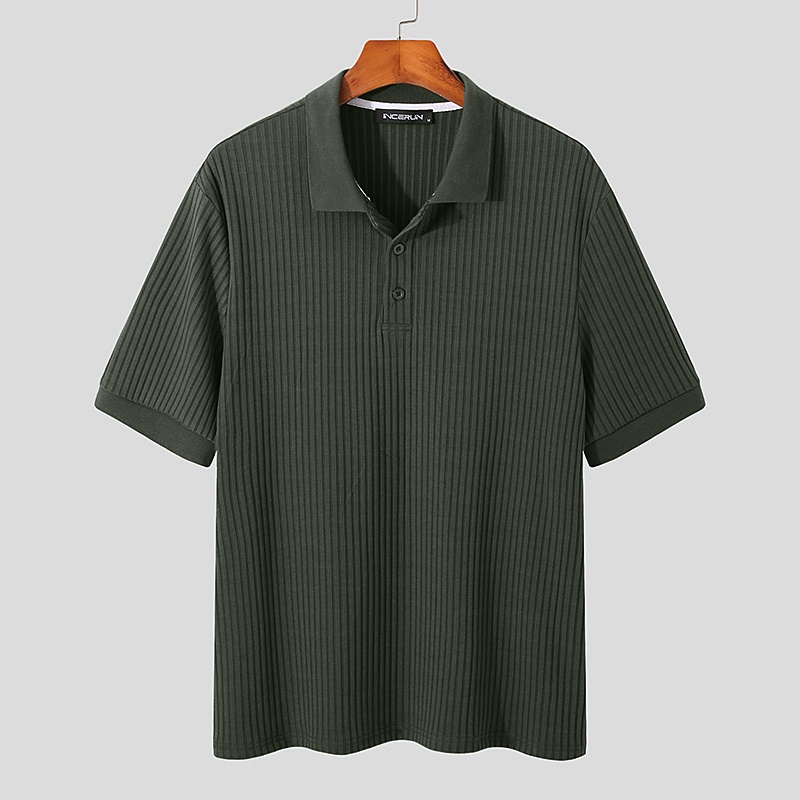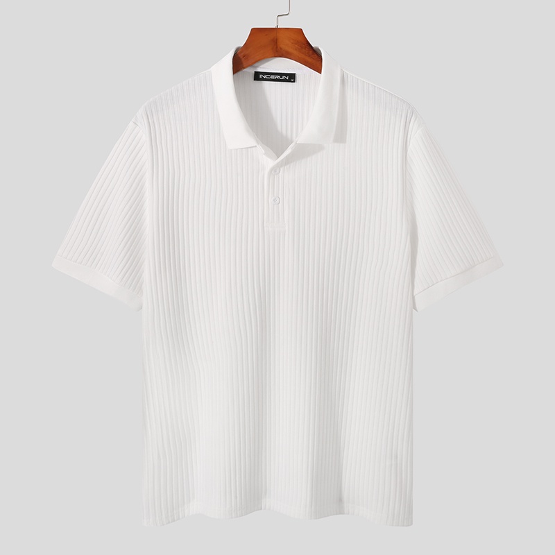 INCERUN Summer Men Short Sleeve Pure Striped Knit Lapel Collar Polo Shirts