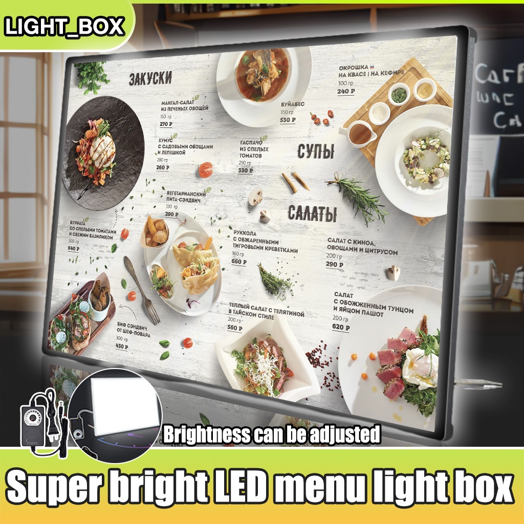 LED Menu Board (A4/A3/A2) with Adjustable Viewing Angle & Brightness - Plug and Play