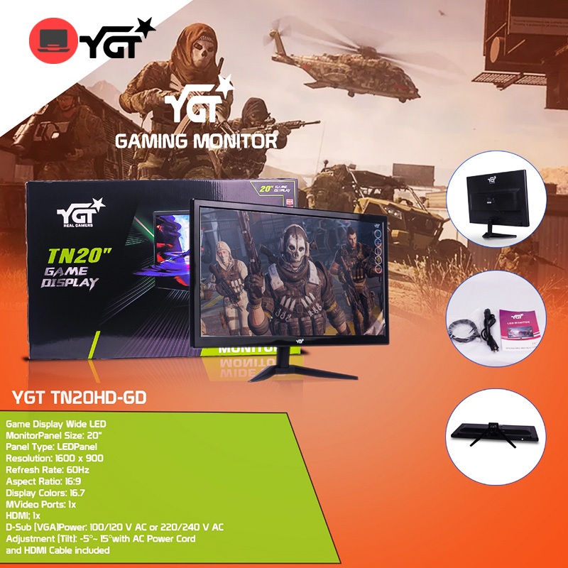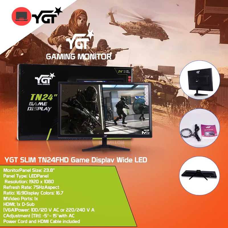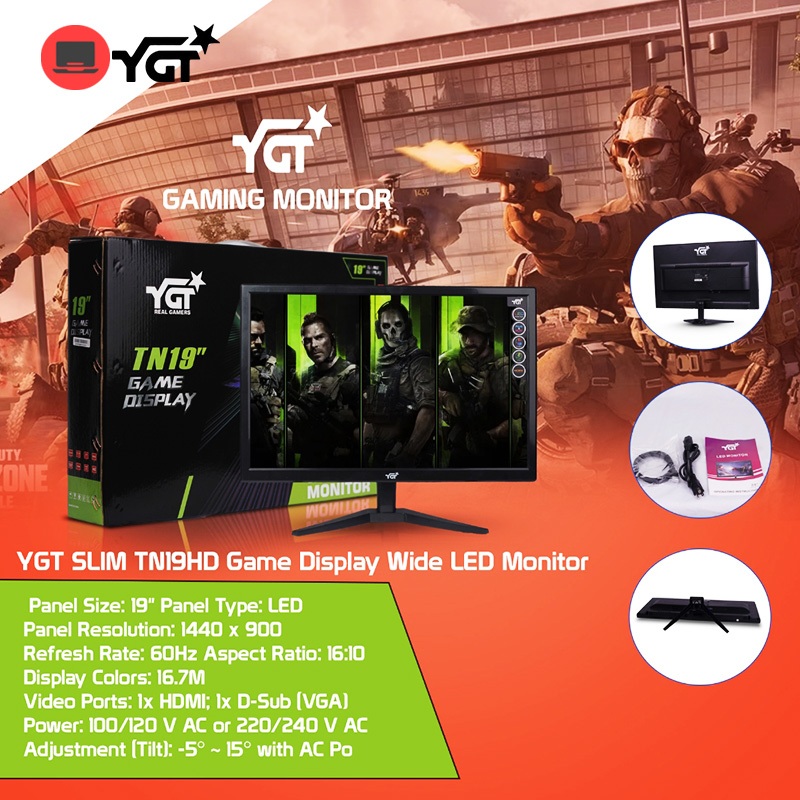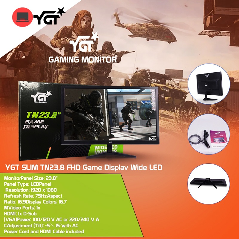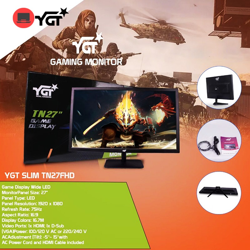 YGT SLIM FHD 19"/20"/21"/24"/27" LED Monitor Display 1080P 60Hz/75Hz/144Hz Gaming/Office PC Monitor
